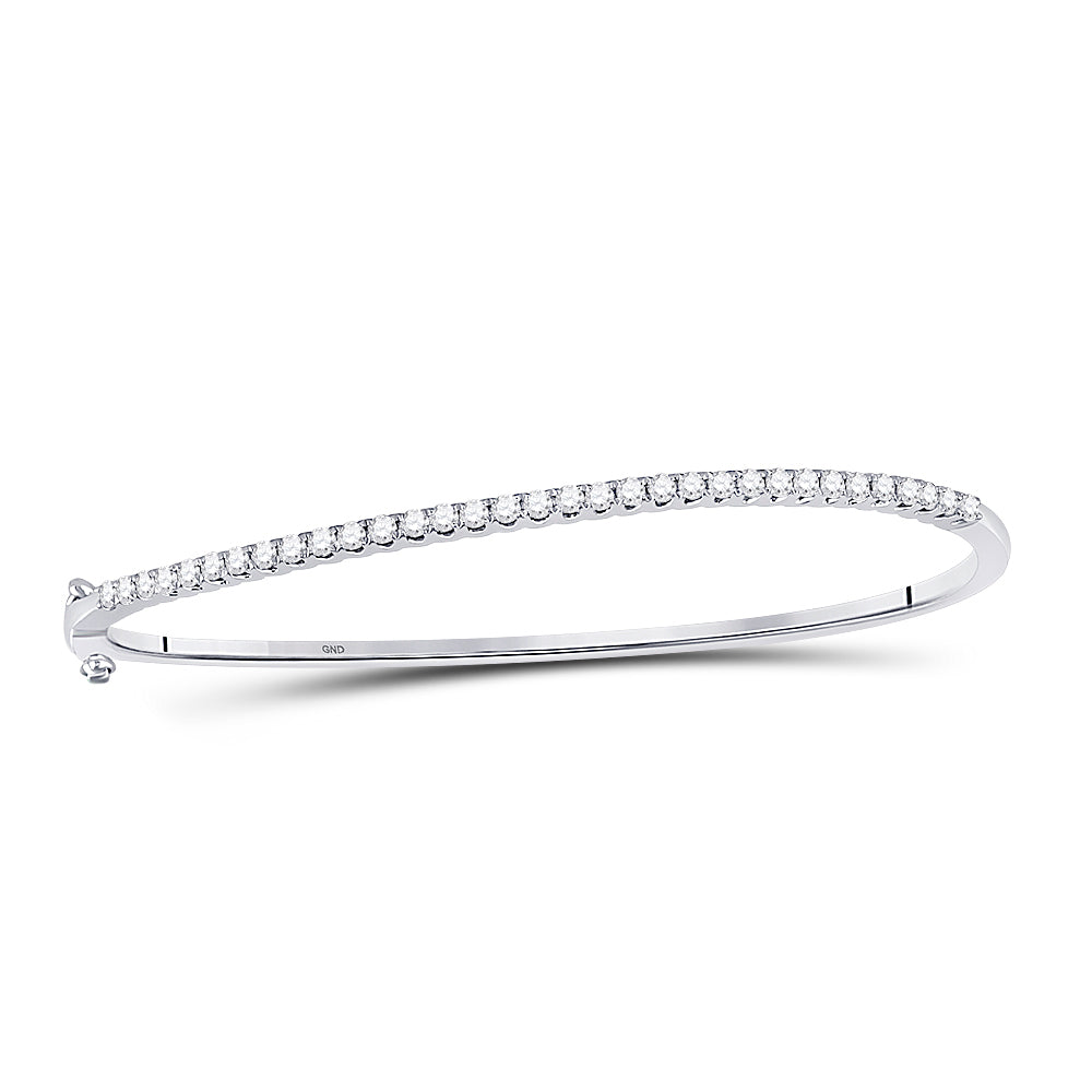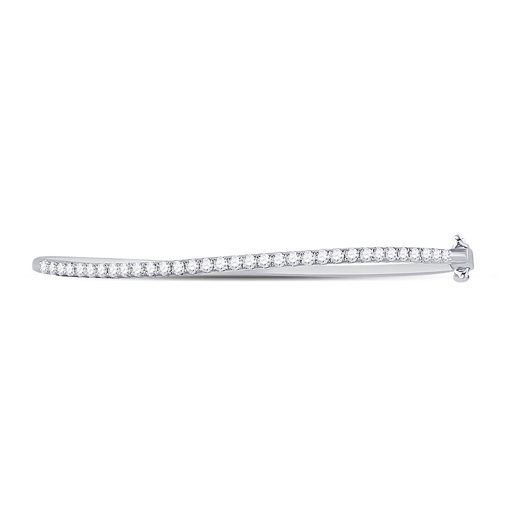 Keene Jewelers 14kt White Gold Womens Round Diamond Curved Bangle Bracelet 1 Cttw