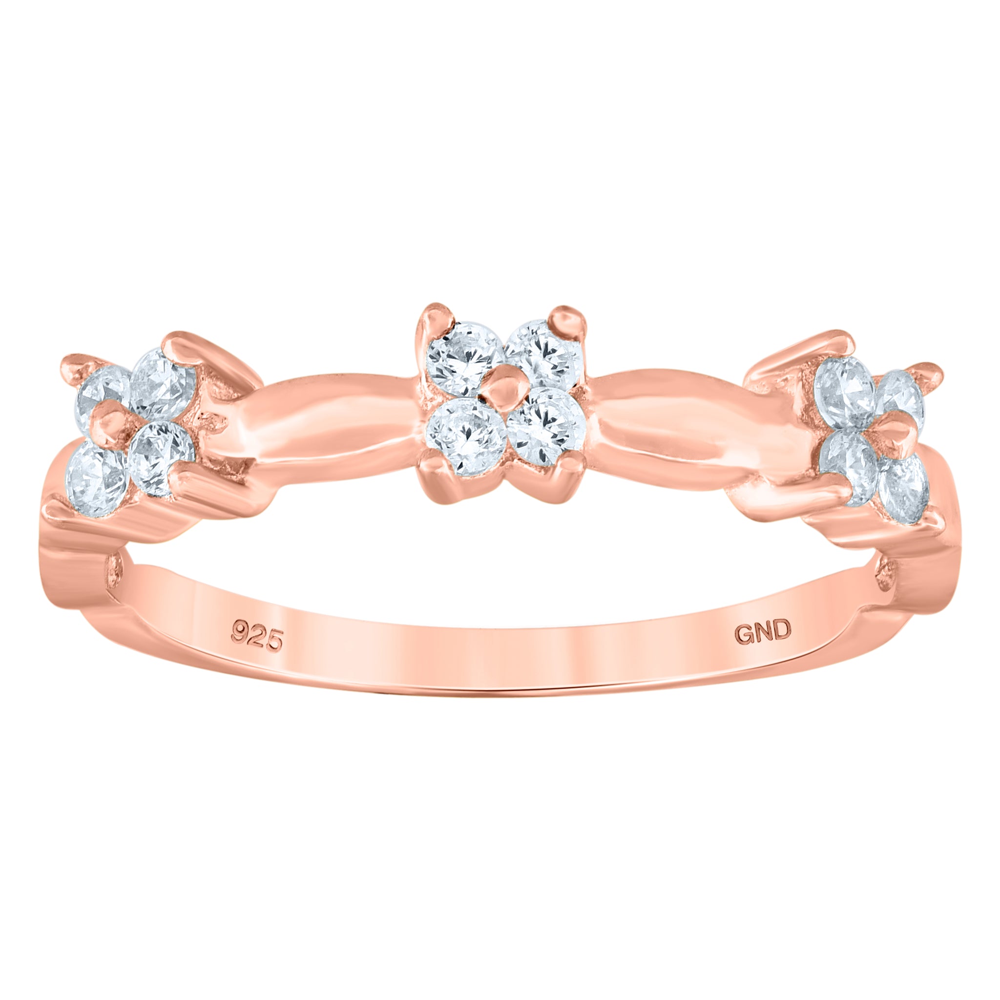 Keene Jewelers 925 Sterling Silver Rose-Tone Womens Cubic-Zirconia Flower Ring Size 7
