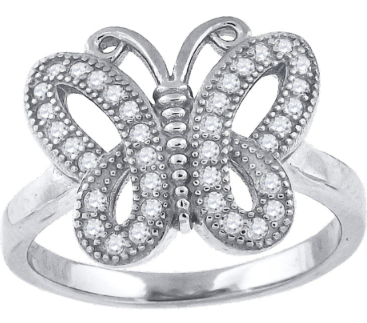 Keene Jewelers 925 Sterling Silver Womens Cubic-Zirconia Butterfly Fashion Ring