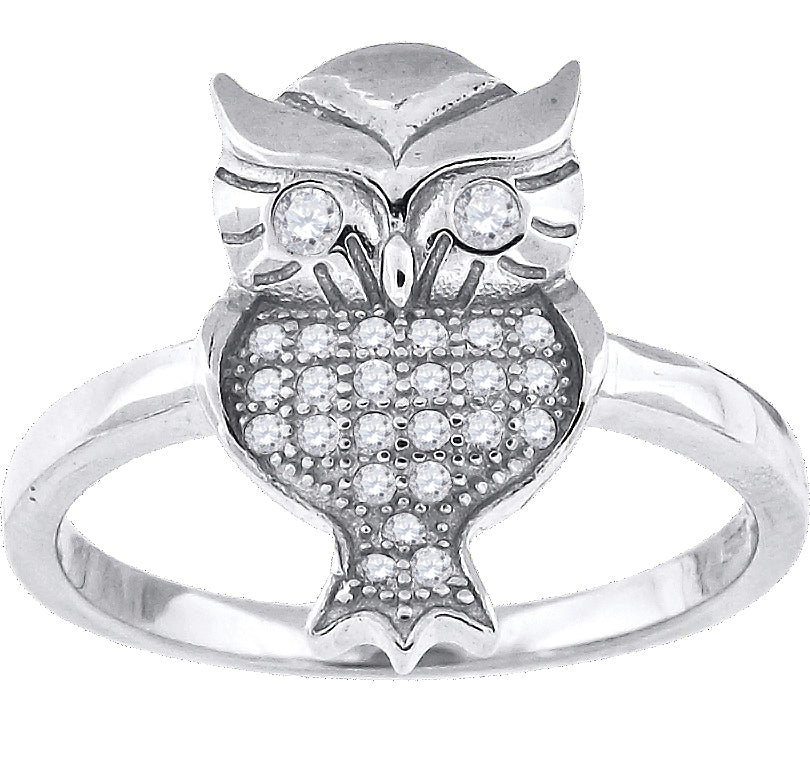 Keene Jewelers 925 Sterling Silver Womens Cubic-Zirconia Owl Bird Fashion Ring