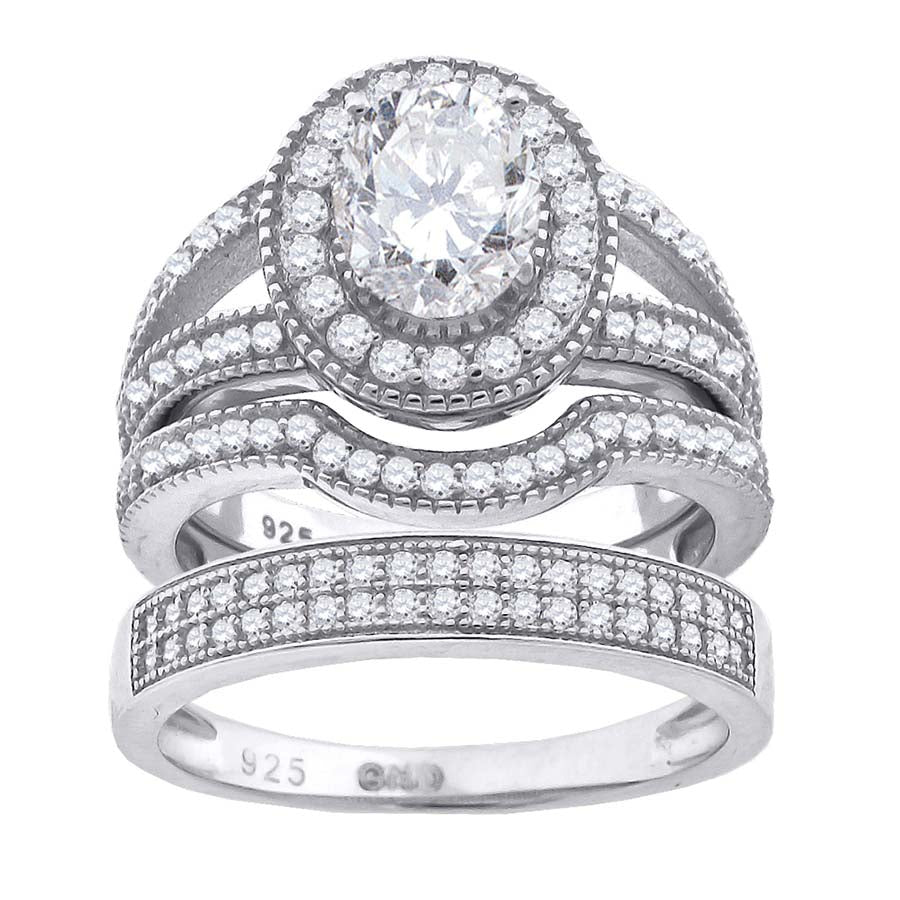 Keene Jewelers 925 Sterling Silver His & Hers Cubic Zirconia Halo Trio Ring Set Size 6