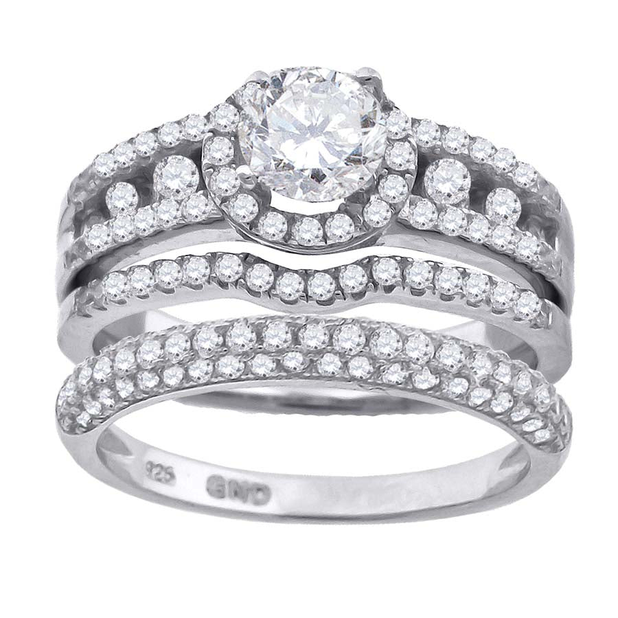 Keene Jewelers 925 Sterling Silver His & Hers Cubic Zirconia Halo Trio Ring Set Size 6