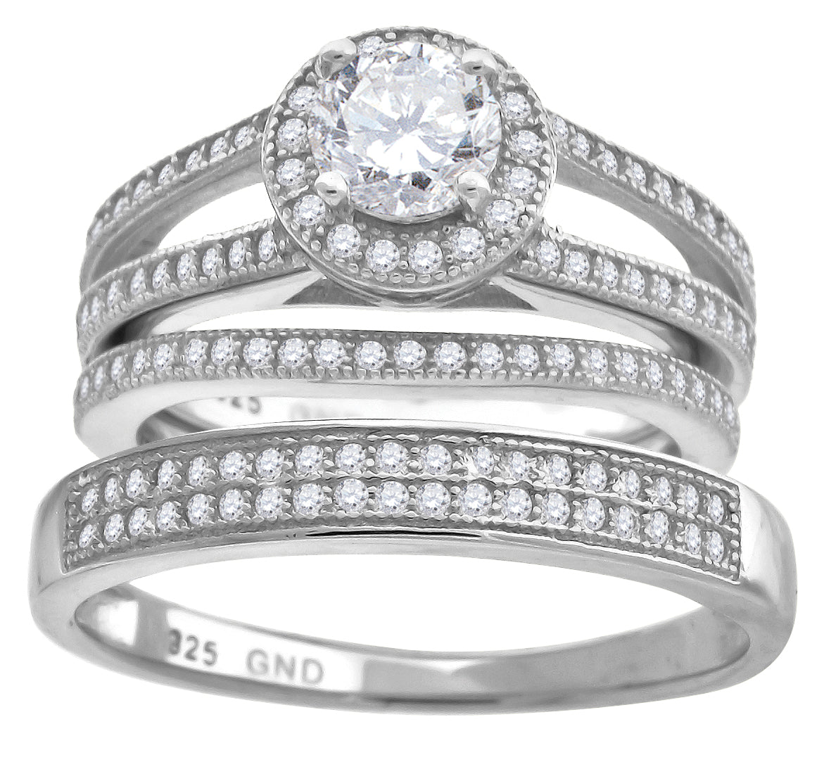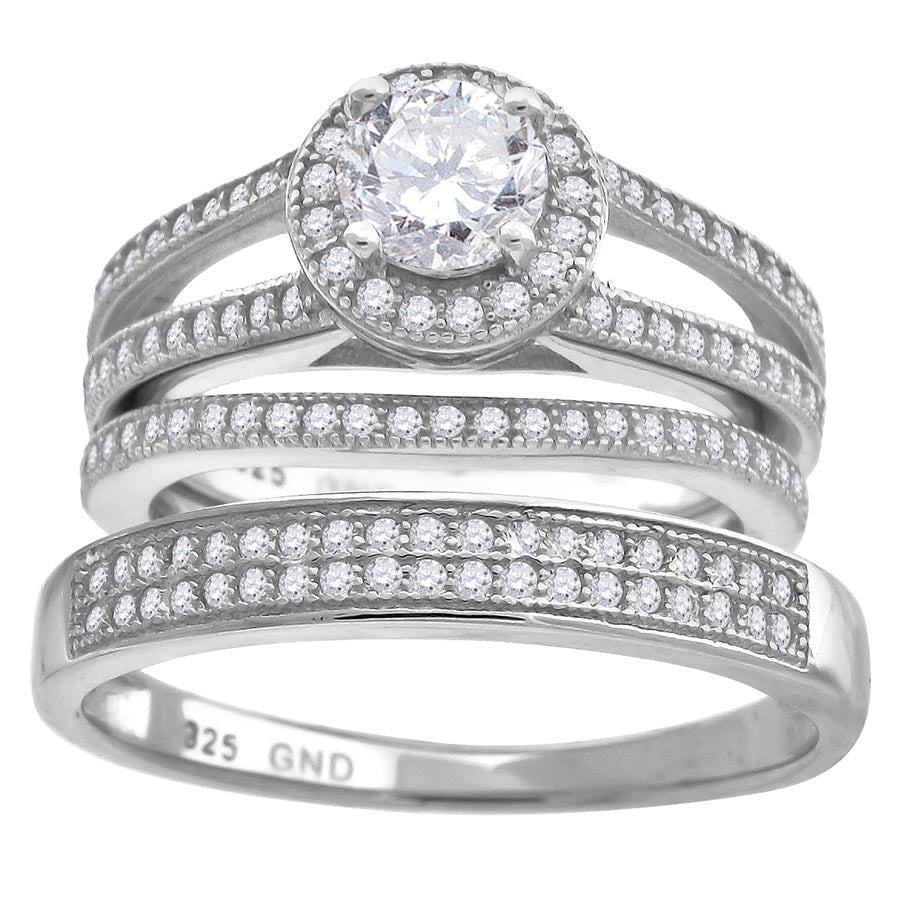 Keene Jewelers 925 Sterling Silver His & Hers Cubic Zirconia Halo Trio Ring Set Size 6