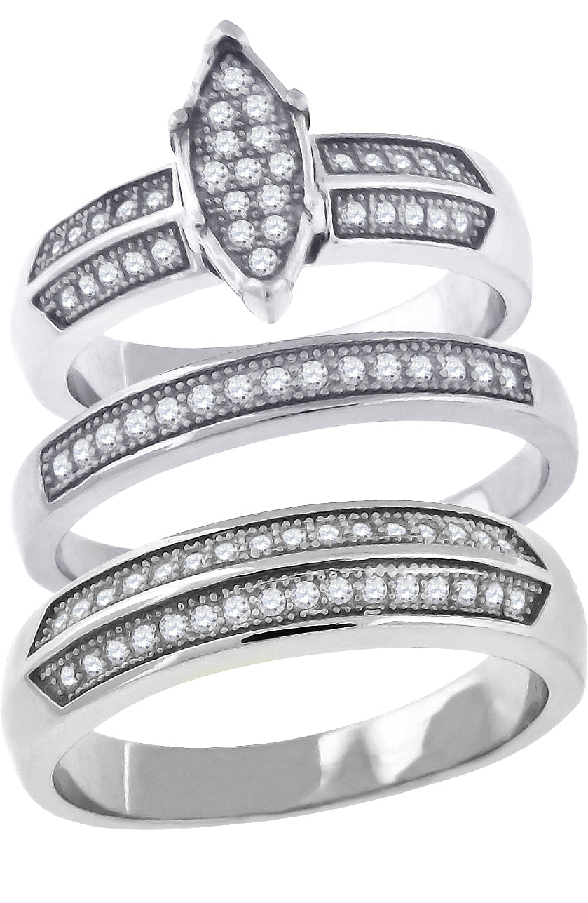 Keene Jewelers 925 Sterling Silver His & Hers Cubic-Zirconia Marquise Head Trio Ring Set Size 6