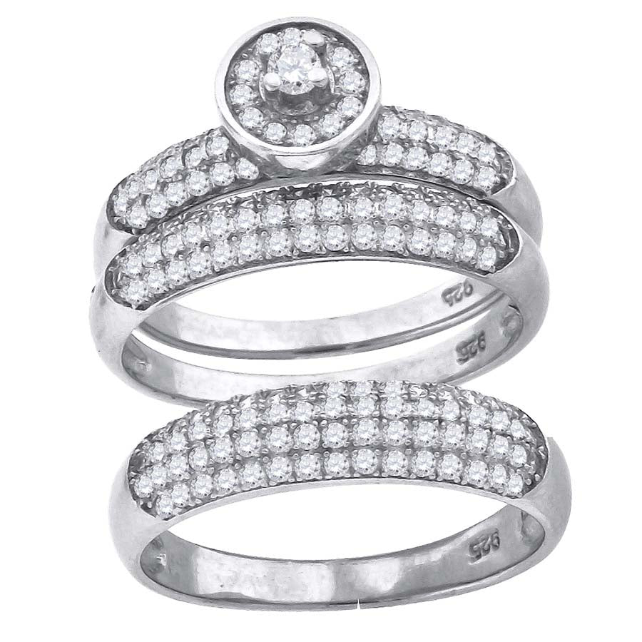 Keene Jewelers 925 Sterling Silver His & Hers Cubic-Zirconia Round Head Trio Ring Set Size 6