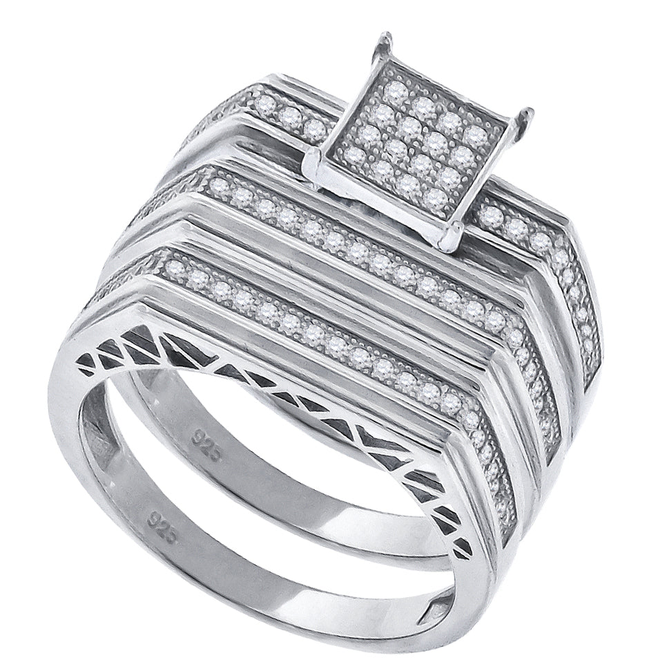 Keene Jewelers 925 Sterling Silver His & Hers Cubic-Zirconia Square Head Trio Ring Set Size 6