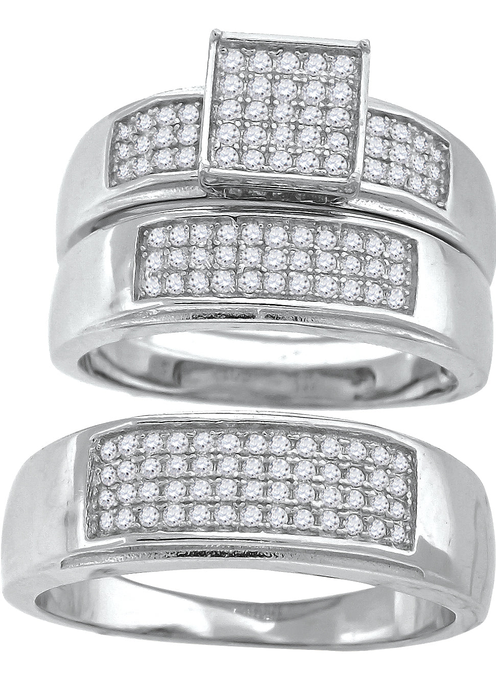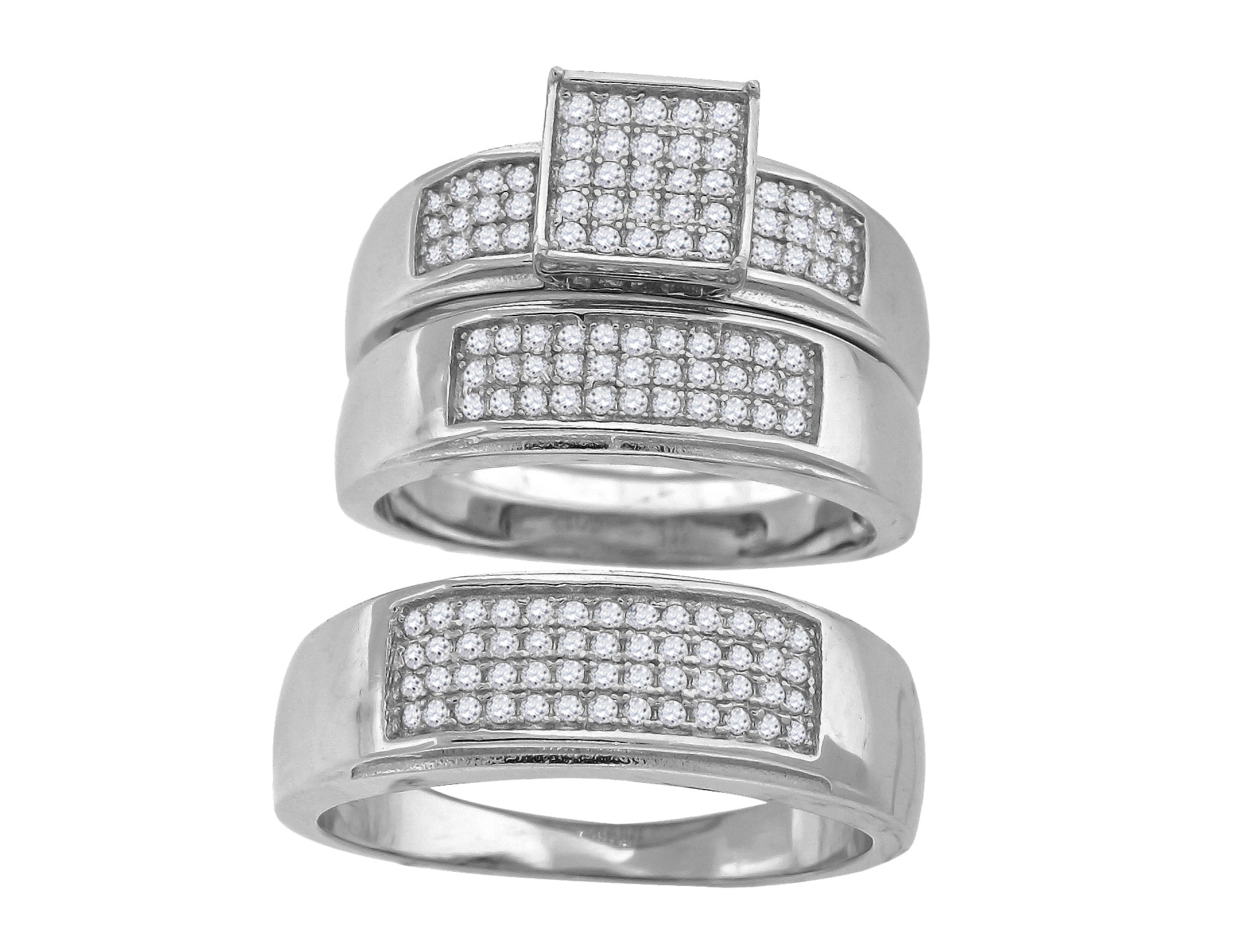 Keene Jewelers 925 Sterling Silver His & Hers Cubic-Zirconia Square Head Trio Ring Set Size 7