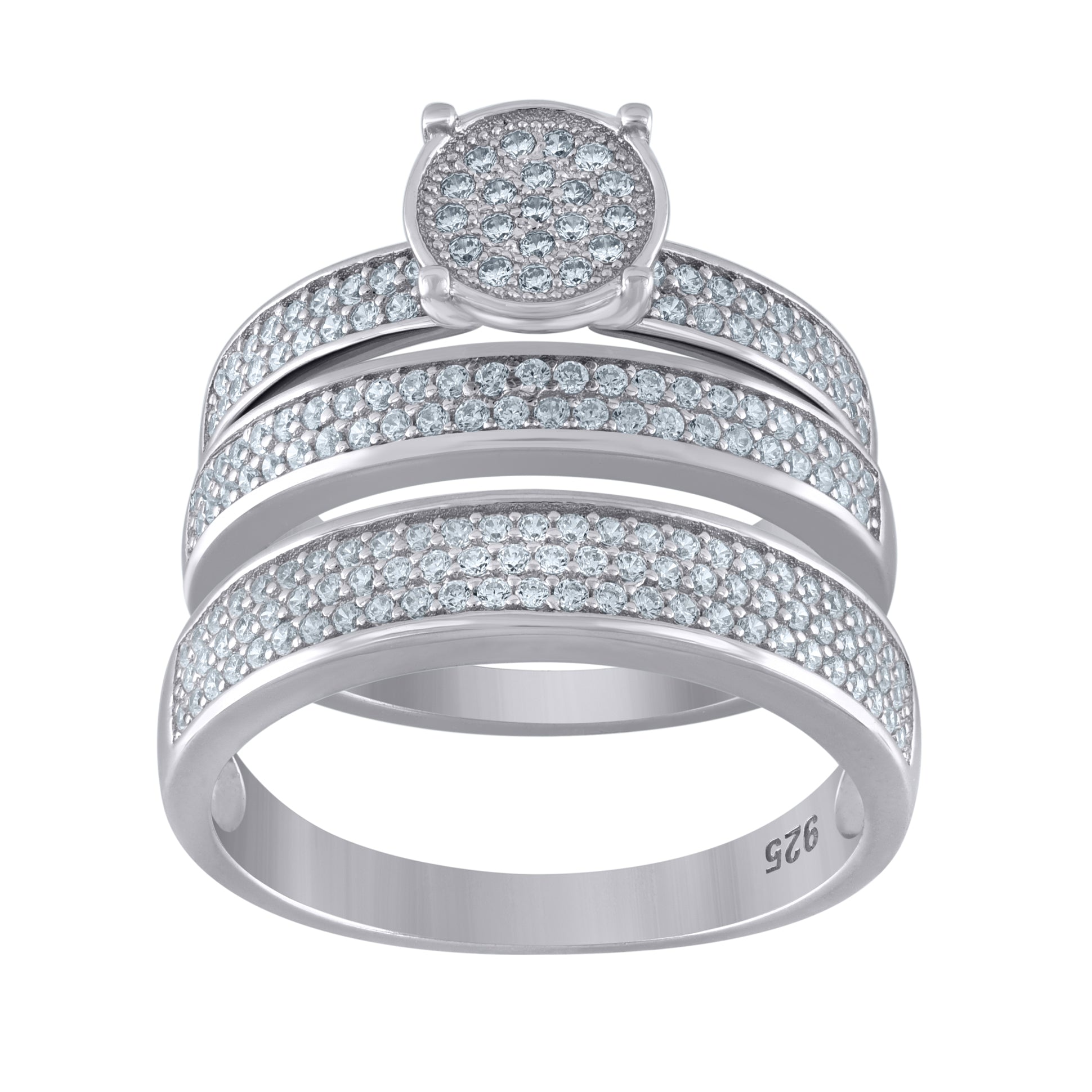 Keene Jewelers 925 Sterling Silver His & Hers Cubic Zirconia Trio Ring Set Size 6