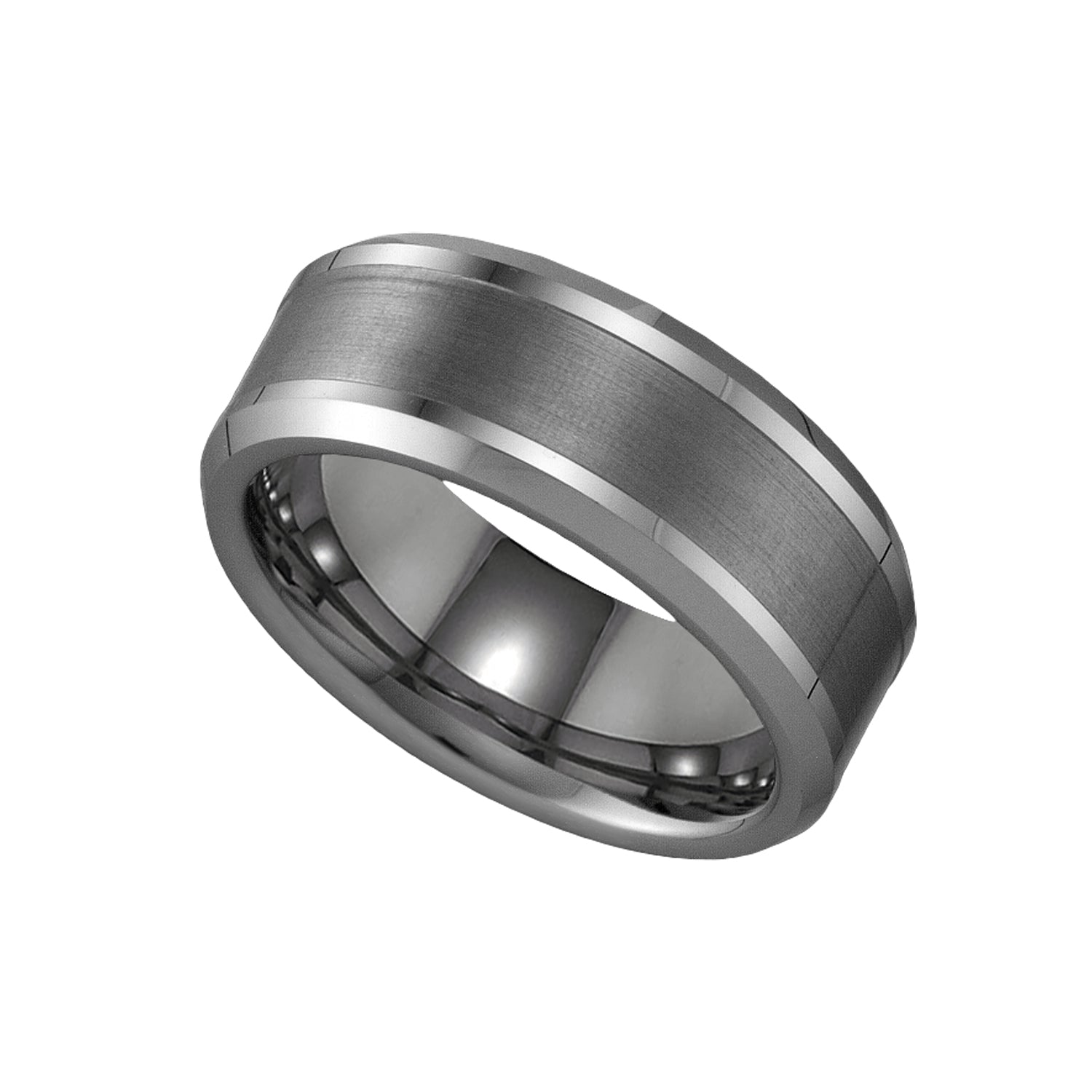 Keene Jewelers Tungsten Center Brushed Beveled Edges Mens Comfort-fit 8mm Wedding Anniversary Band