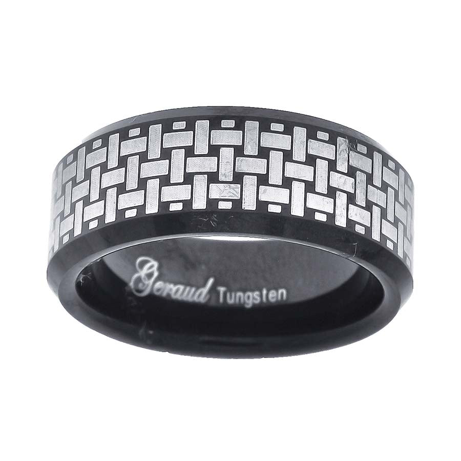 Keene Jewelers Tungsten Black Polished Laser Itched Mens Comfort-fit 8mm Wedding Band