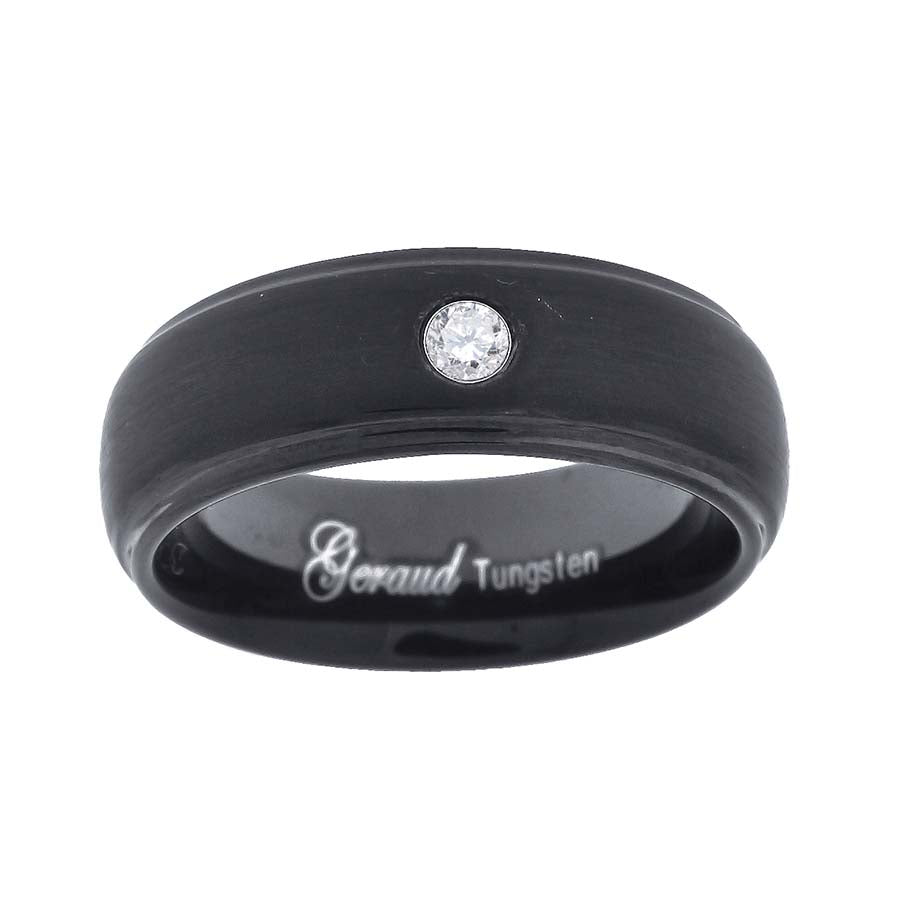Keene Jewelers Tungsten Black CZ Step Edges Mens Comfort-fit 6mm Wedding Anniversary Band