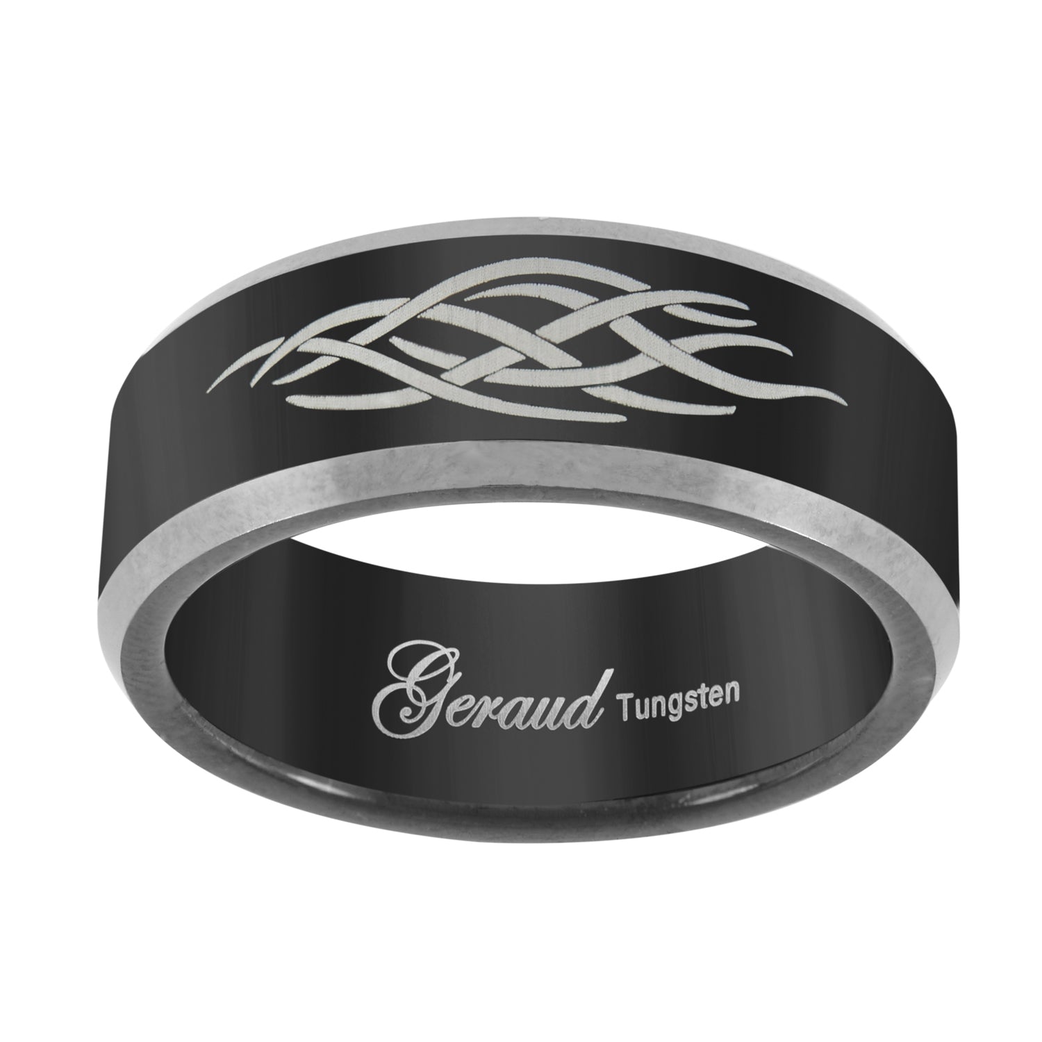 Keene Jewelers Tungsten Black Center Celtic Design Comfort-fit 8mm Wedding Band