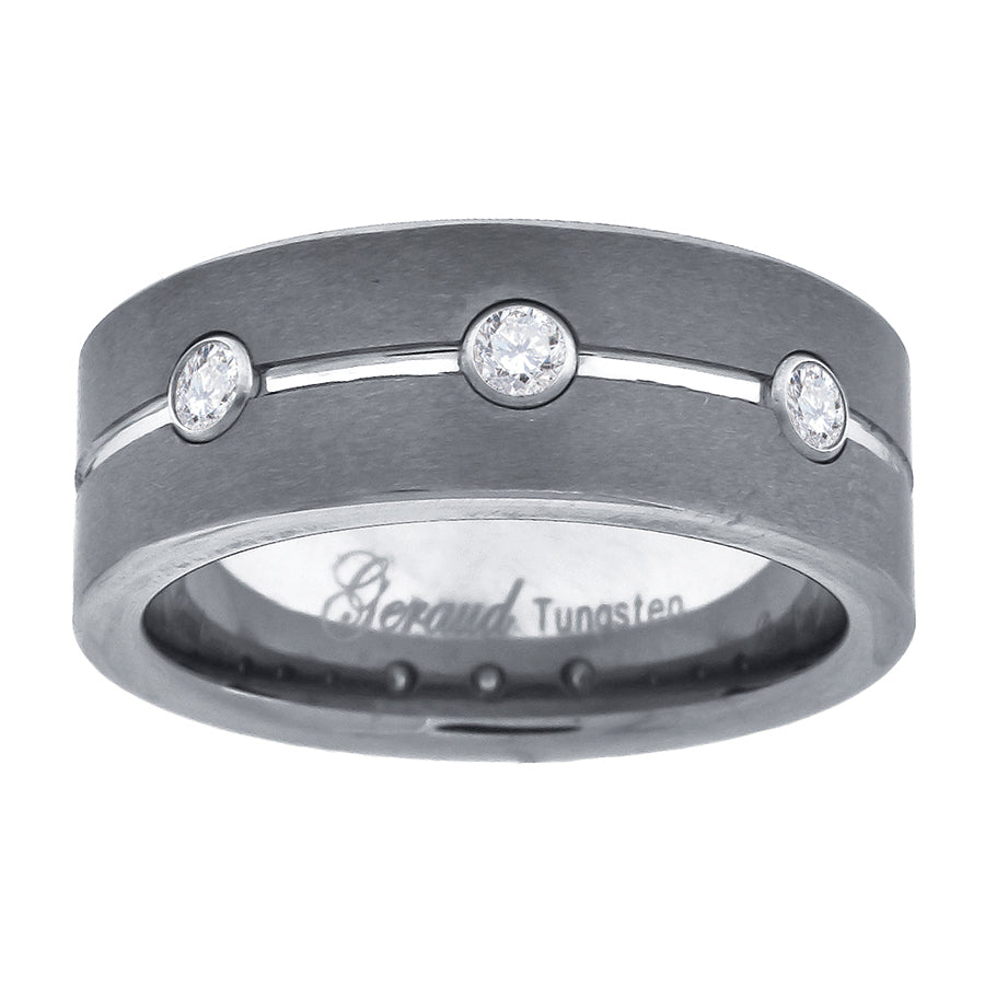 Keene Jewelers Tungsten Grooved Triple CZ Mens Comfort-fit 8mm Wedding Band