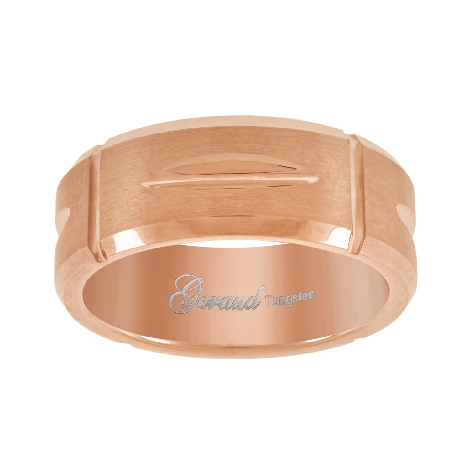 Keene Jewelers Tungsten Rose-tone Diamond-cut Mens Comfort-fit 8mm Size-8 Wedding Anniversary Band