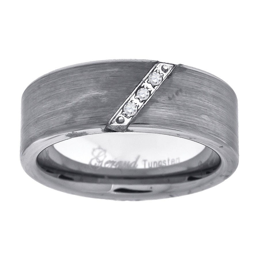 Keene Jewelers Tungsten Brushed Diagonal CZ Line Mens Comfort-fit 8mm Size-8.5 Wedding Band