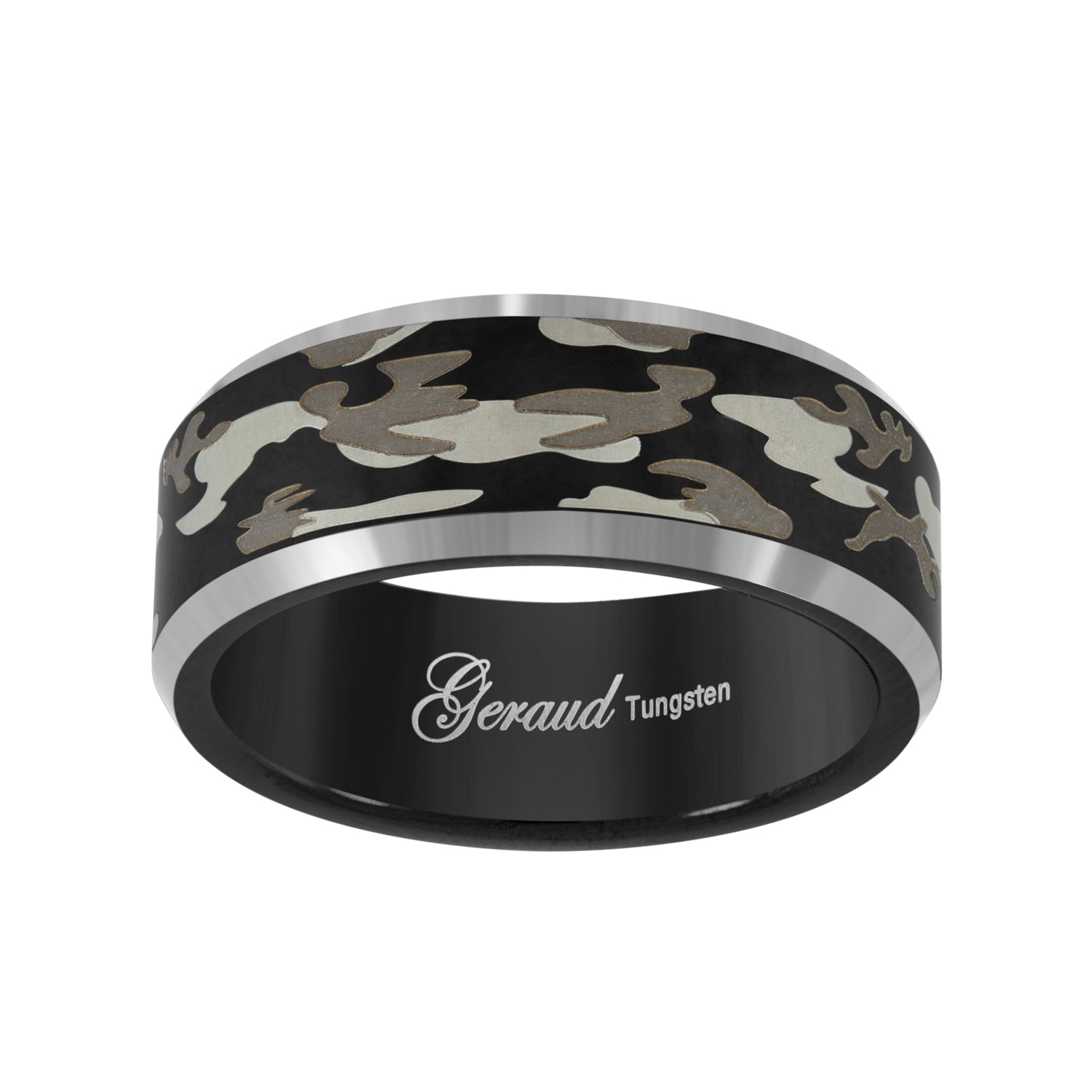 Keene Jewelers Tungsten Black Camouflage Military Mens Mens Comfort-fit 8mm Wedding Band