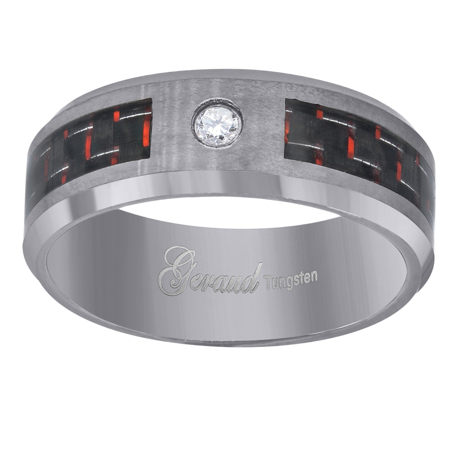 Keene Jewelers Tungsten Red-Black Carbon Fiber Inlay CZ Mens Comfort-fit 8mm Wedding Band