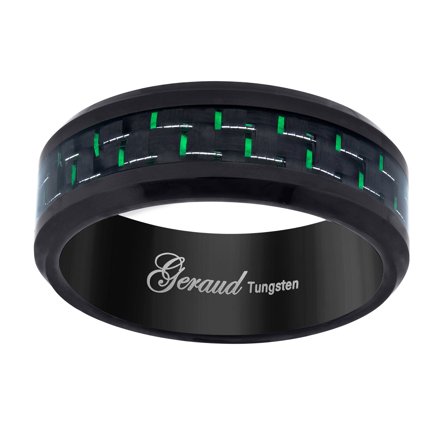 Keene Jewelers Tungsten Green-Black Carbon Fiber Inlay Comfort-fit 8mm Wedding Band