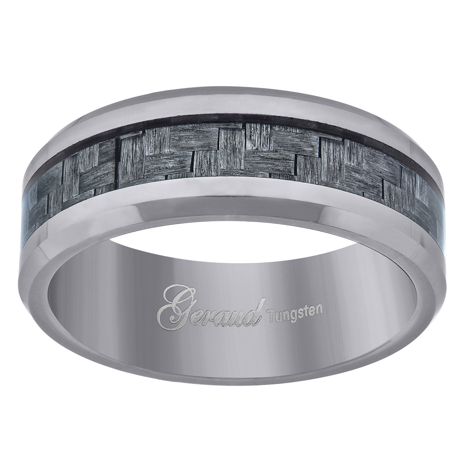 Keene Jewelers Tungsten Grey Carbon Fiber Inlay Comfort-fit 8mm Wedding Band