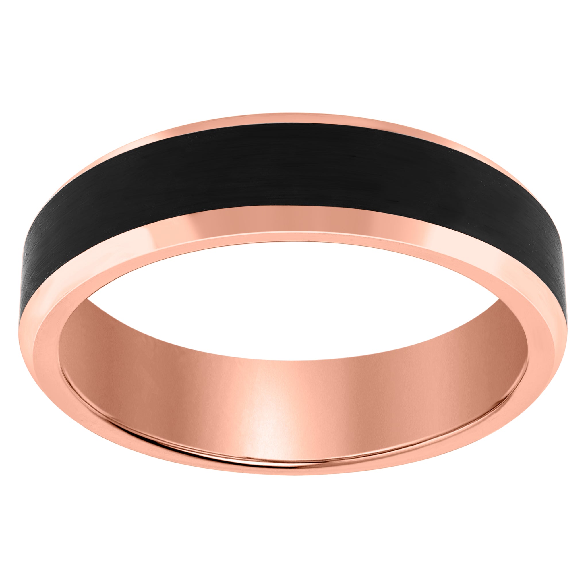 Keene Jewelers Tungsten Black Rose Tone Mens Beveled Edges Comfort-fit Anniversary Band 6mm