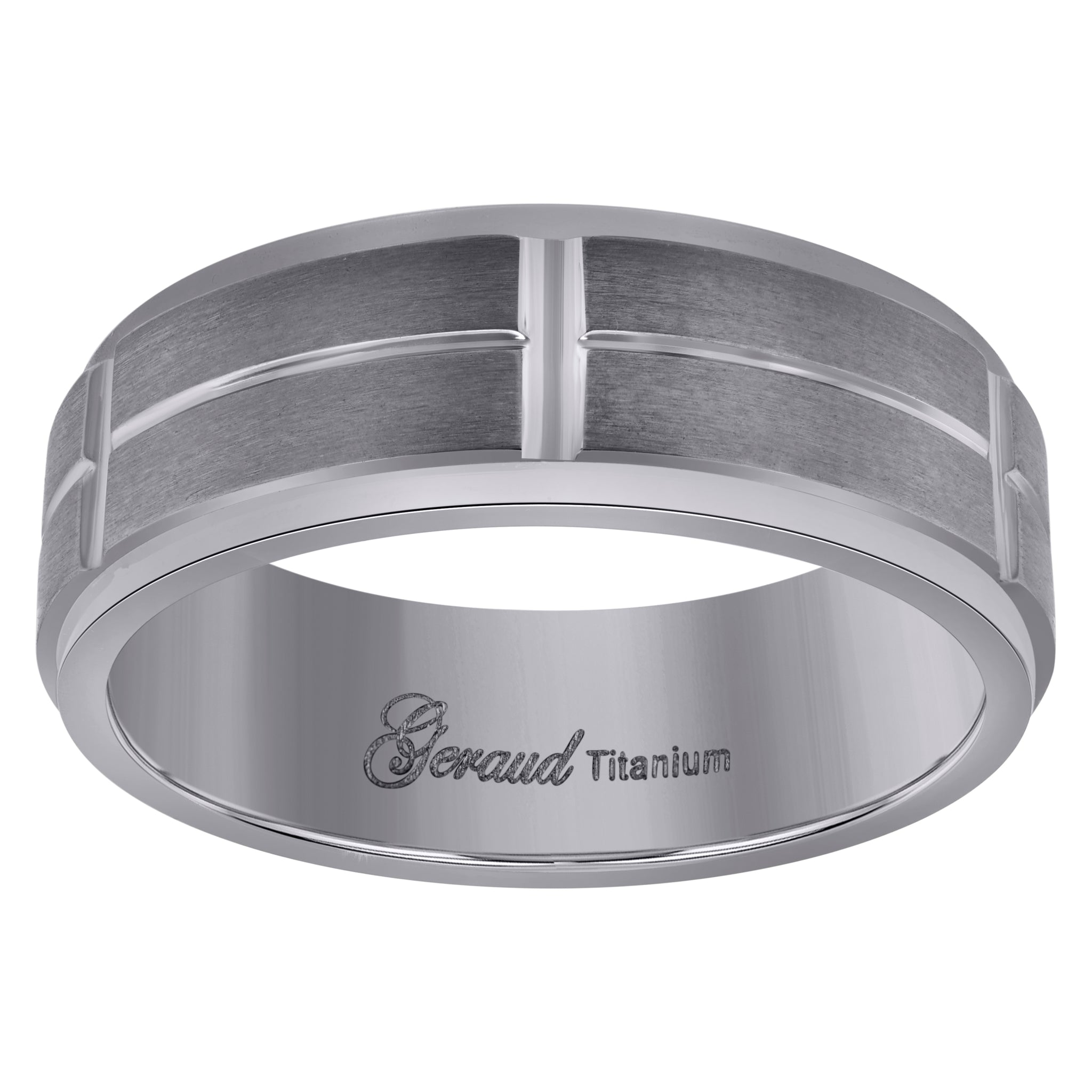 Keene Jewelers Titanium Mens Brushed Center Grooved Ridged Edge Comfort Fit Wedding Band 7mm