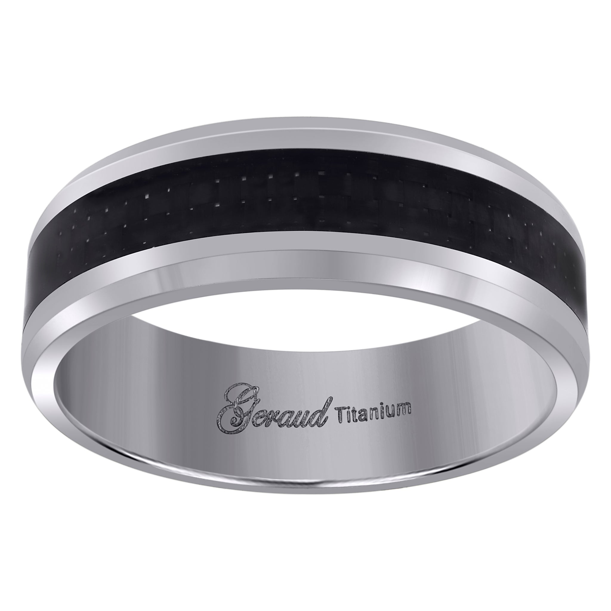 Keene Jewelers Titanium Mens Black Carbon Fiber Inlay Comfort Fit Wedding Band 8mm