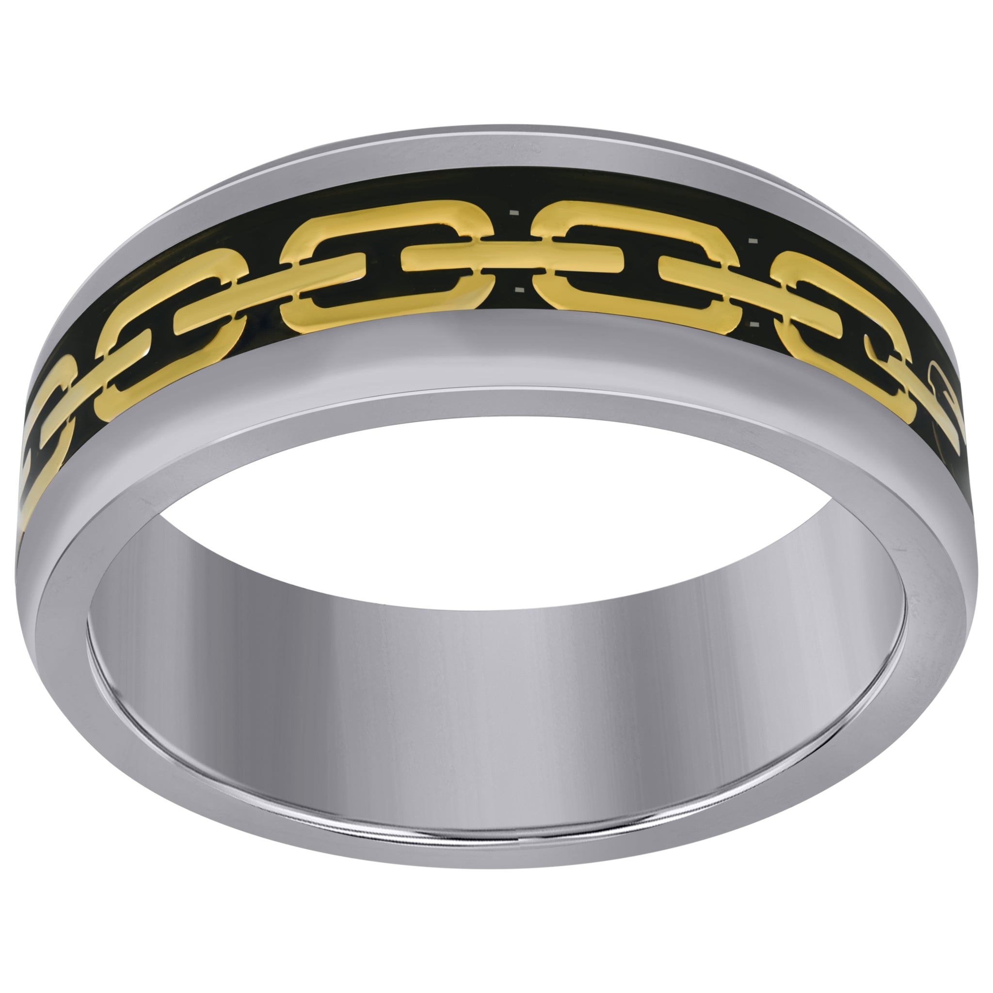 Keene Jewelers Titanium Black Yellow Tone Chain Comfort Fit Wedding Band 8mm