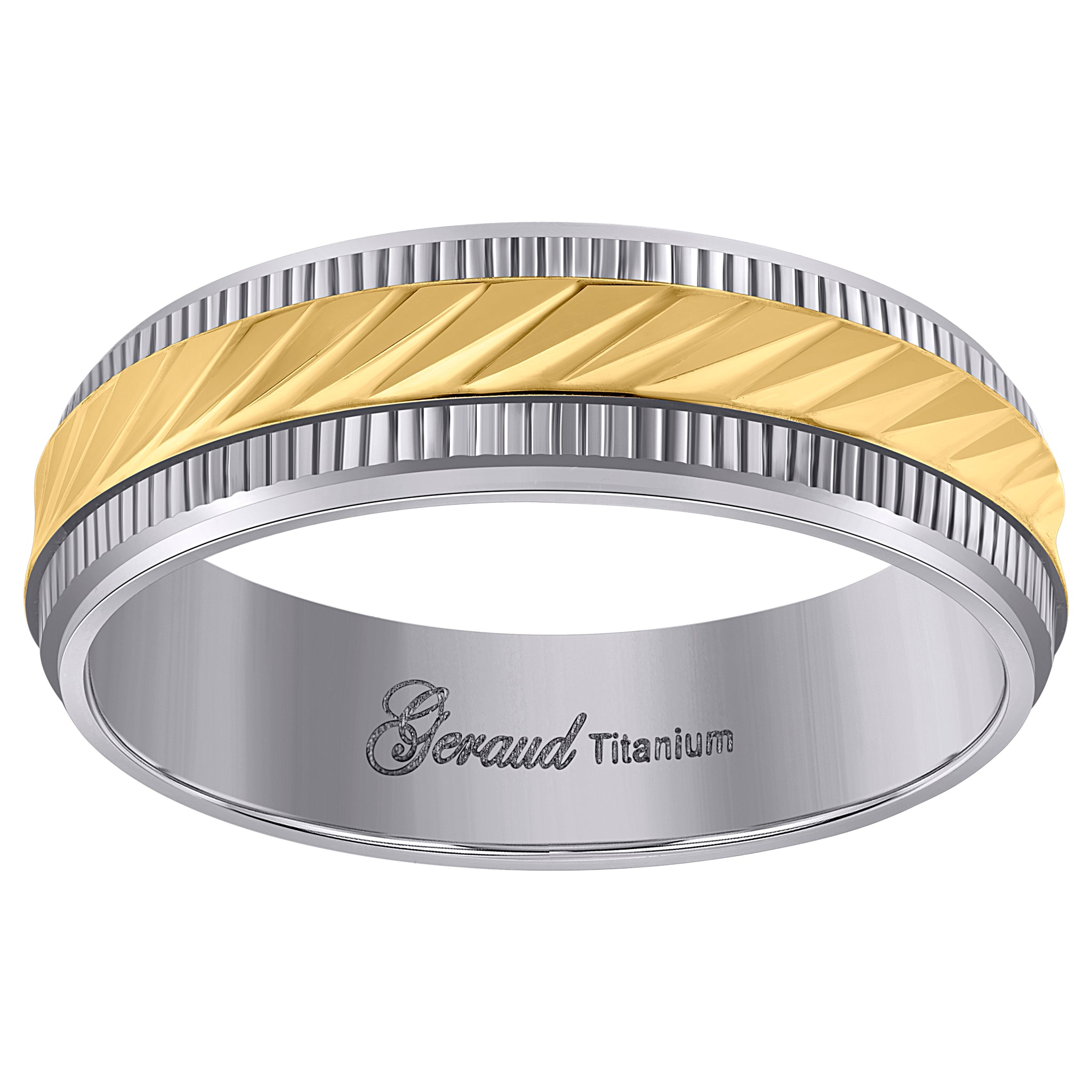 Keene Jewelers Titanium Yellow Tone Mens Beveled Edge Comfort Fit Wedding Band 7mm