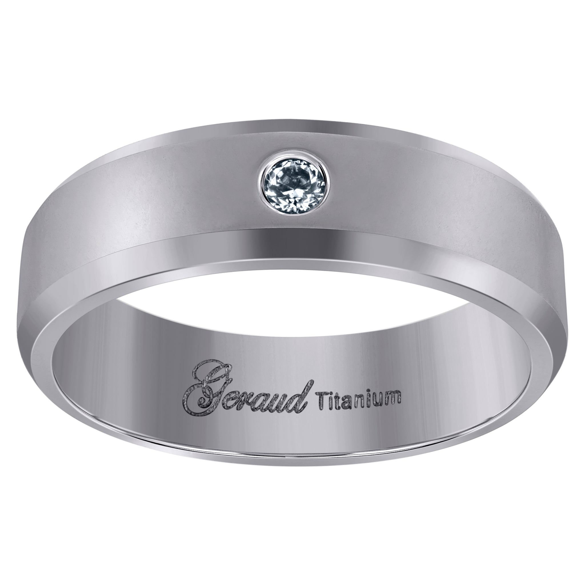 Keene Jewelers Titanium Mens Cubic Zirconia CZ Beveled Edge Comfort Fit Wedding Band 6mm
