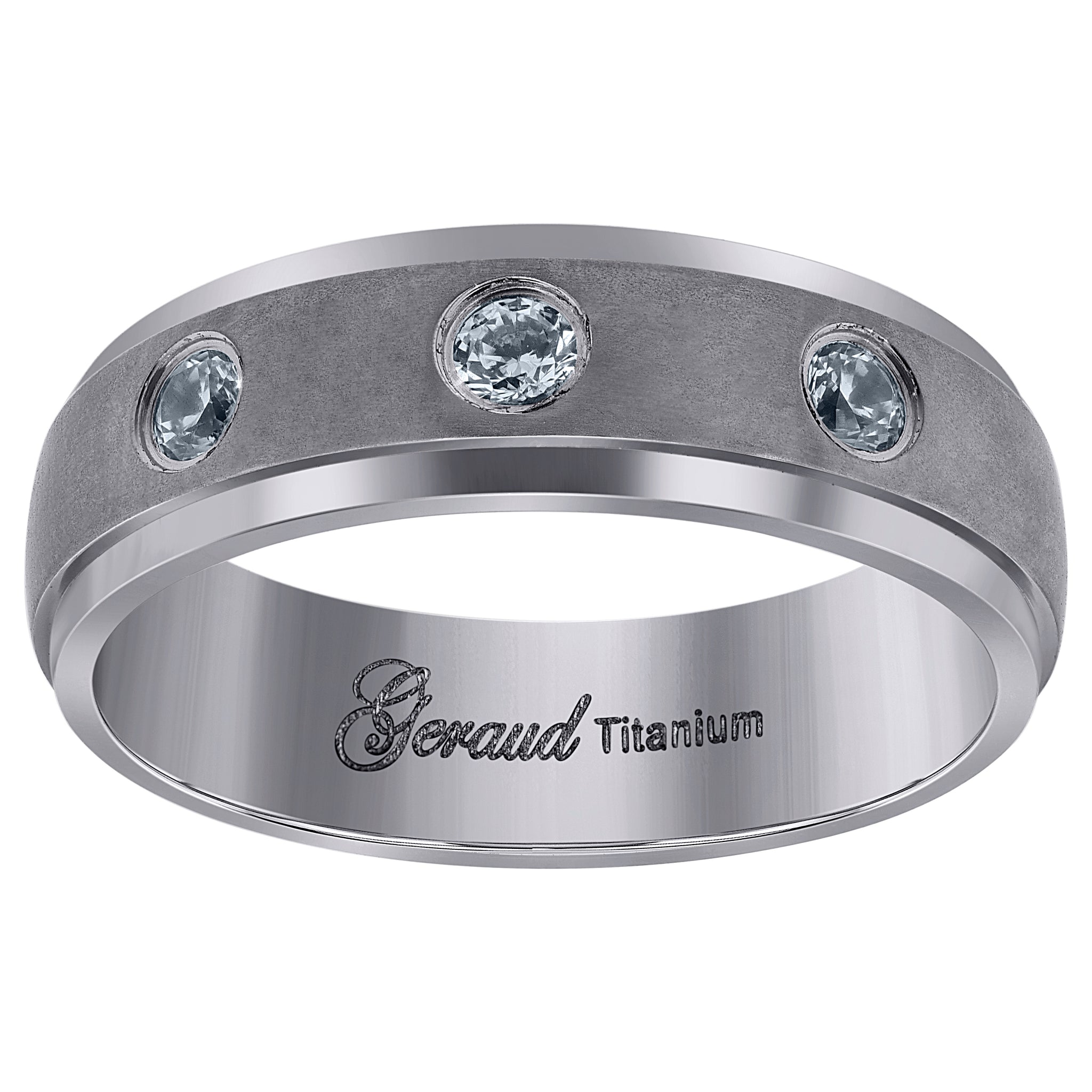 Keene Jewelers Titanium Mens Cubic Zirconia CZ Brushed Ridged Edge Comfort Fit Wedding Band 6mm