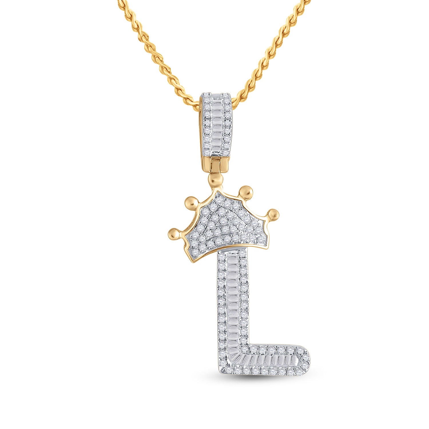 Keene Jewelers 10kt Yellow Gold Mens Baguette Diamond Crown L Letter Charm Pendant 1/2 Cttw