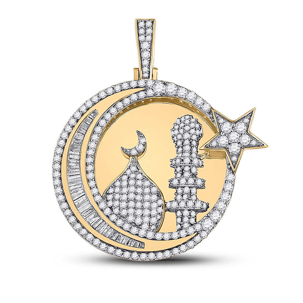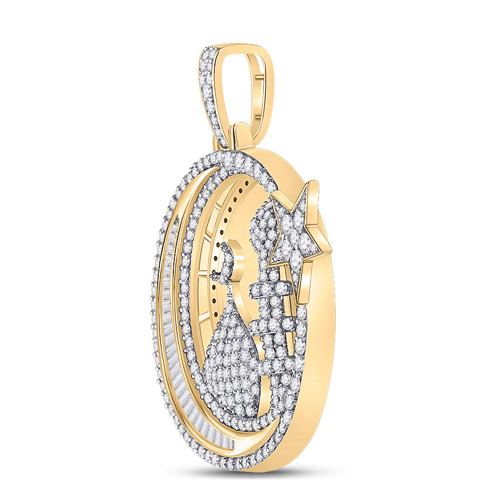 Keene Jewelers 10kt Yellow Gold Mens Baguette Diamond Islam Crescent Moon Charm Pendant 2-3/8 Cttw