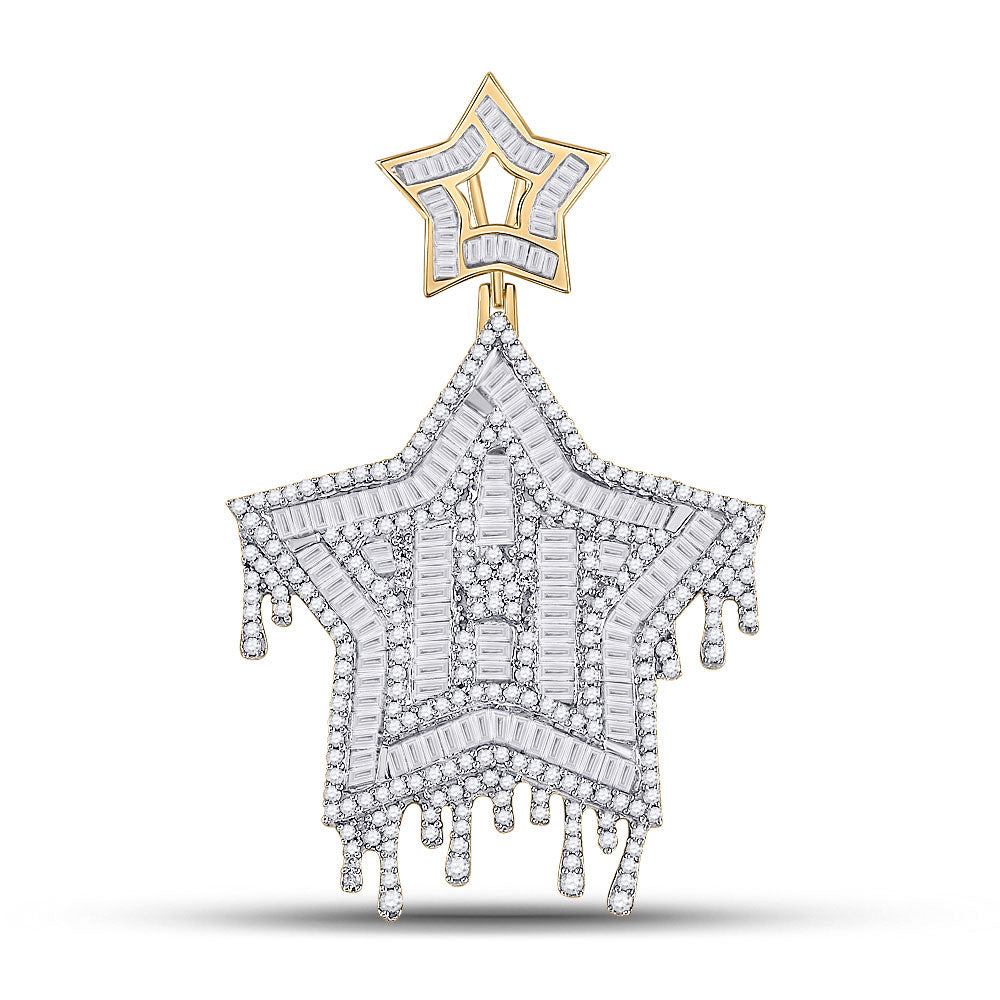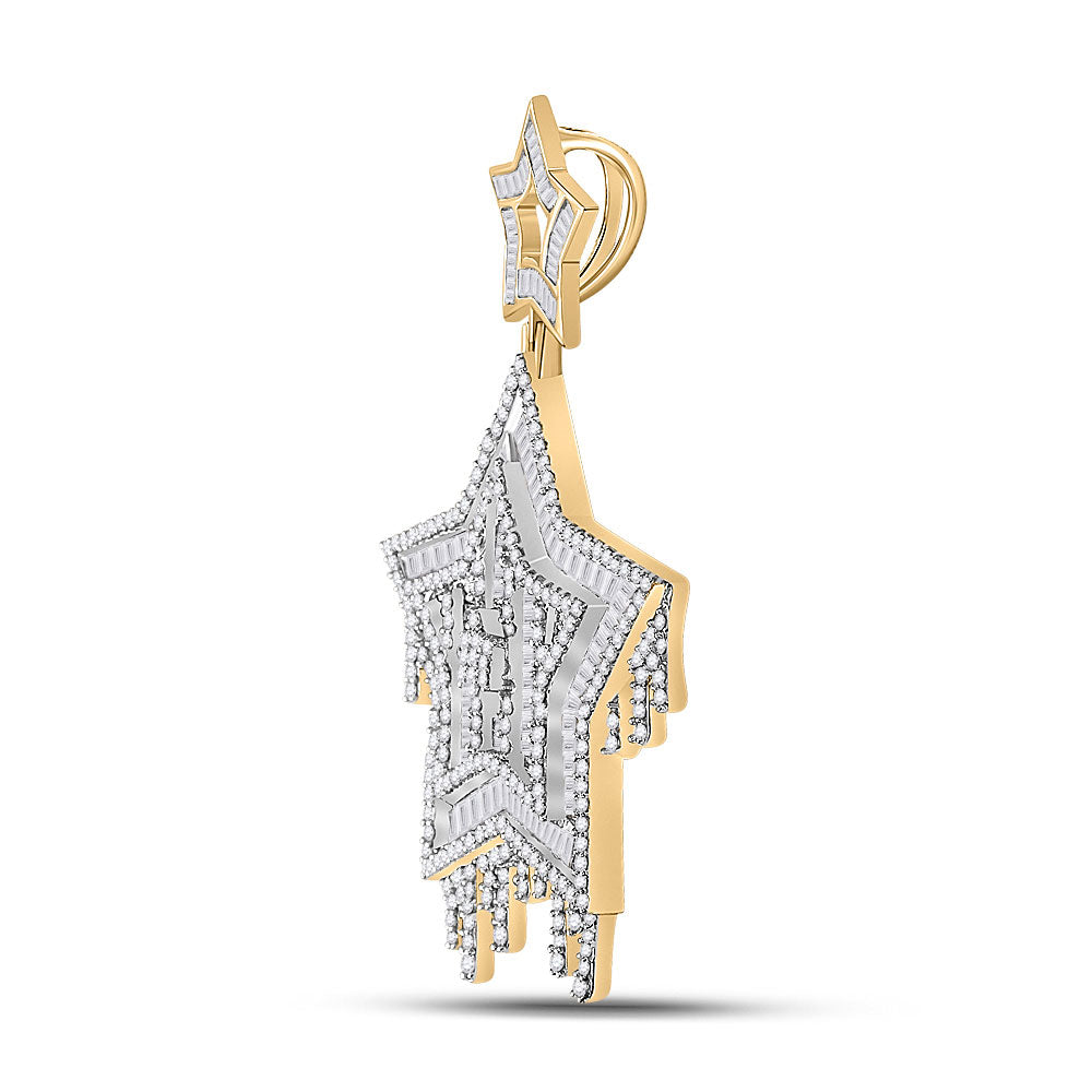 Keene Jewelers 10kt Yellow Gold Mens Baguette Diamond Star Dripping Charm Pendant 2-3/4 Cttw