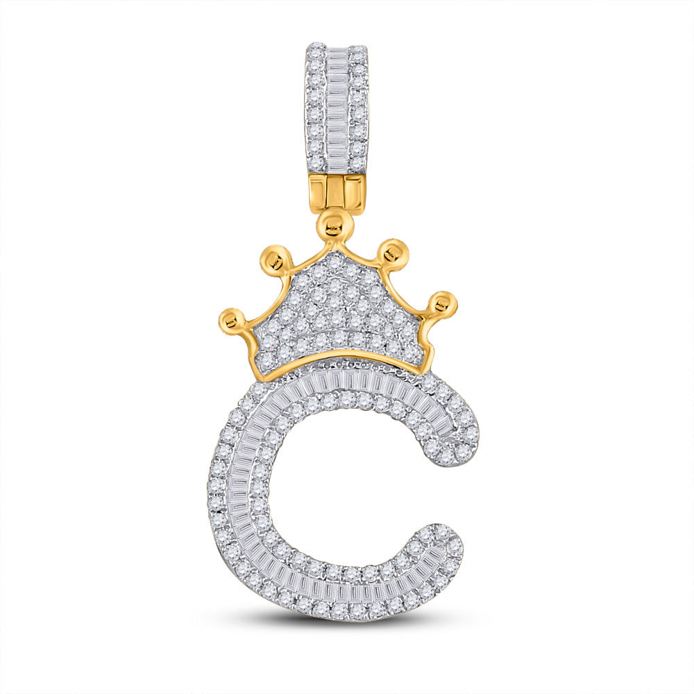 Keene Jewelers 10kt Yellow Gold Mens Round Diamond Crown C Letter Charm Pendant 5/8 Cttw