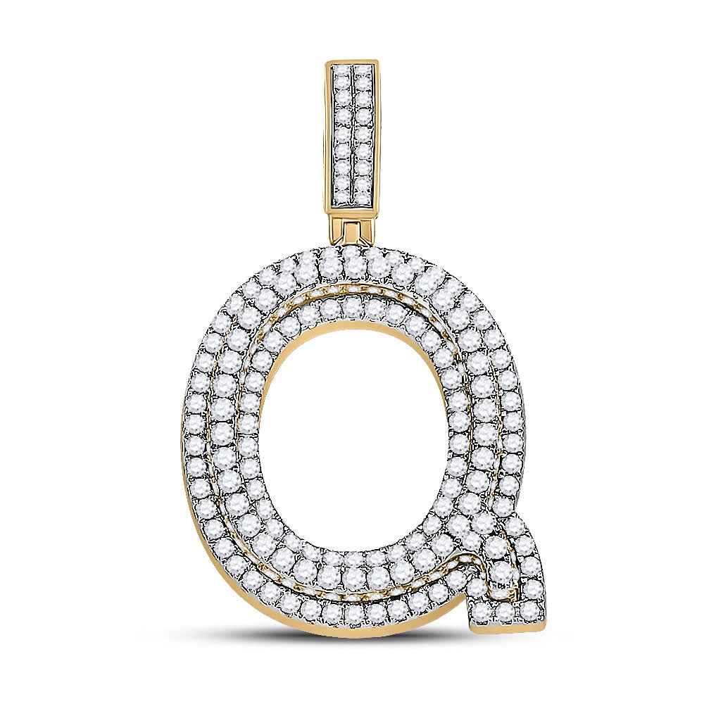Keene Jewelers 10kt Yellow Gold Mens Round Diamond Letter Q Charm Pendant 1-7/8 Cttw