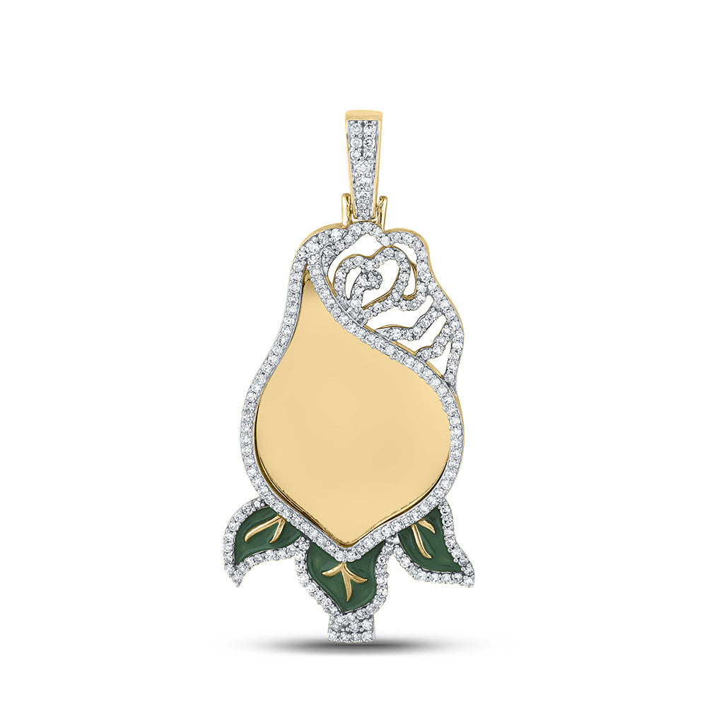 Keene Jewelers 10kt Yellow Gold Mens Round Diamond Rose Flower Mirror Charm Pendant 1 Cttw