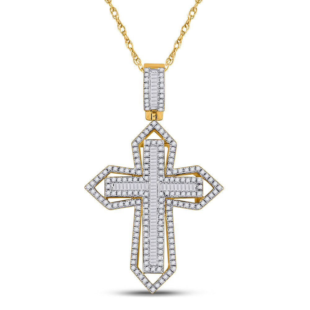 Keene Jewelers 14kt Yellow Gold Mens Baguette Diamond Cross Charm Pendant 7/8 Cttw