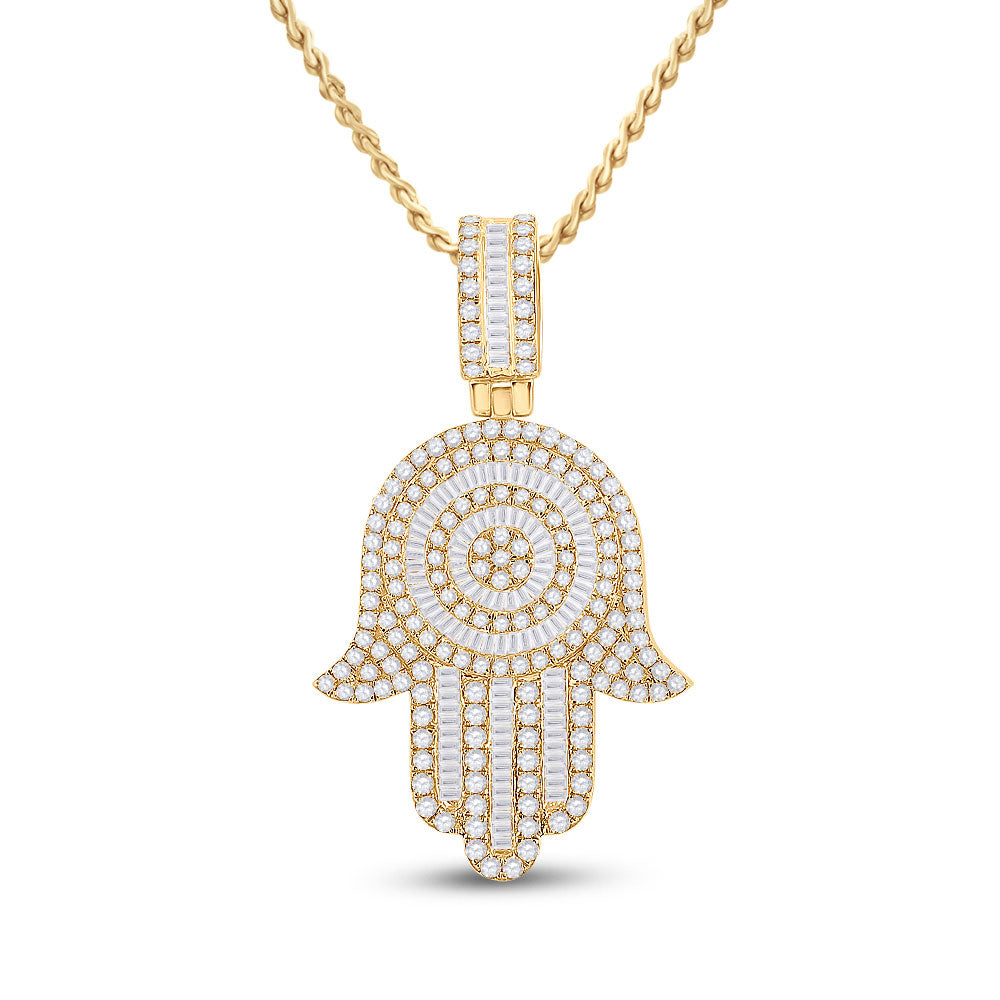 Keene Jewelers 14kt Yellow Gold Mens Baguette Diamond Hamsa Hand Charm Pendant 3 Cttw