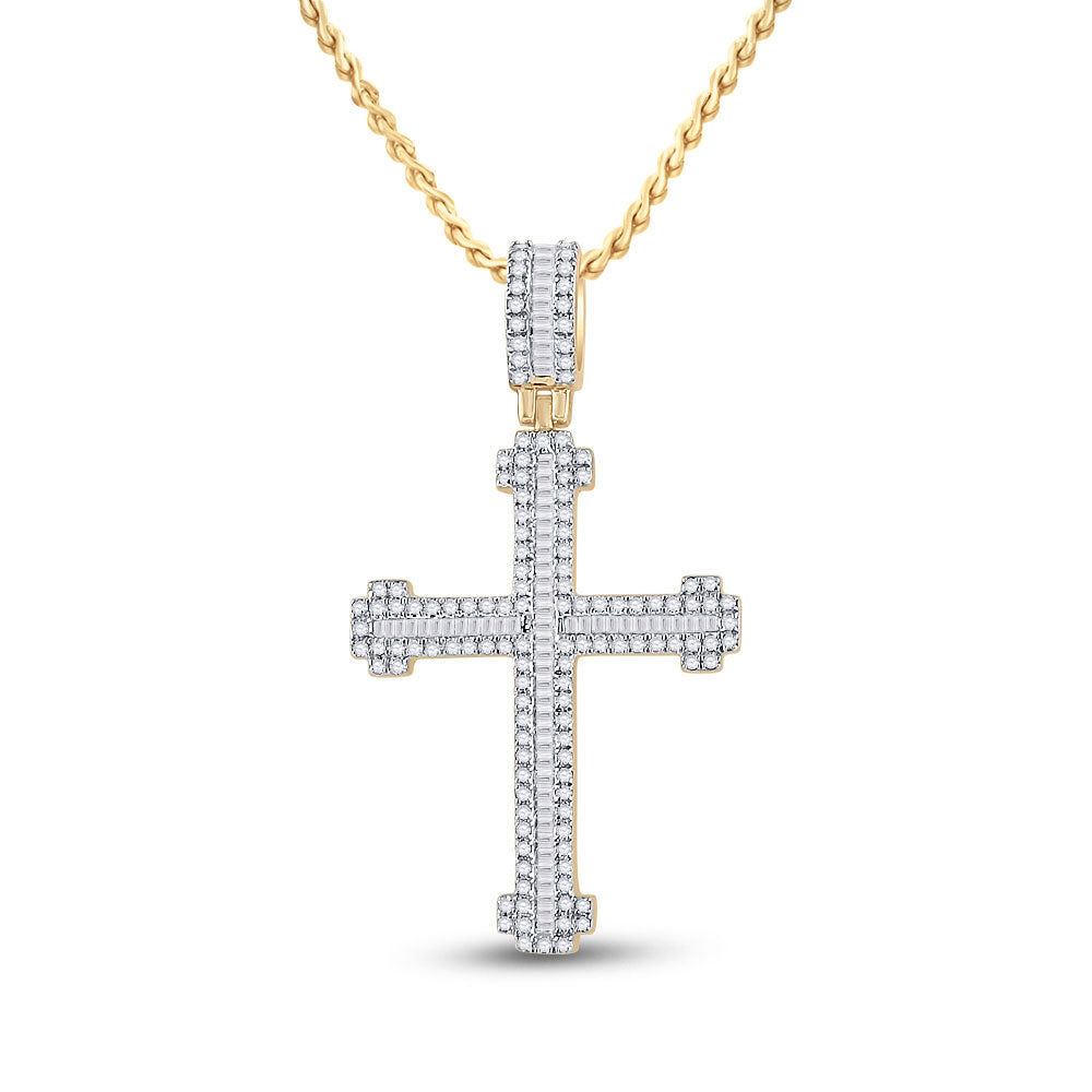 Keene Jewelers 14kt Yellow Gold Mens Round Diamond Cross Charm Pendant 7/8 Cttw