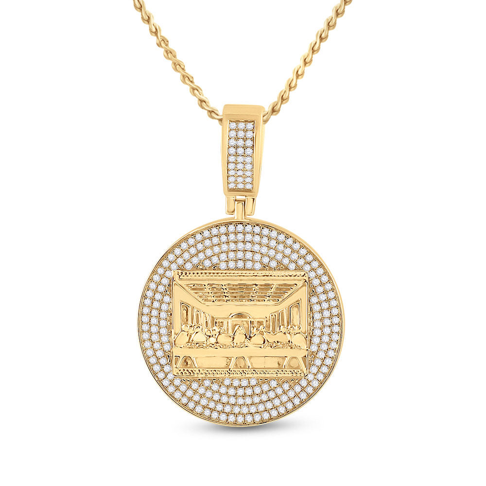 Keene Jewelers 14kt Yellow Gold Mens Round Diamond Last Supper Charm Pendant 3-1/4 Cttw