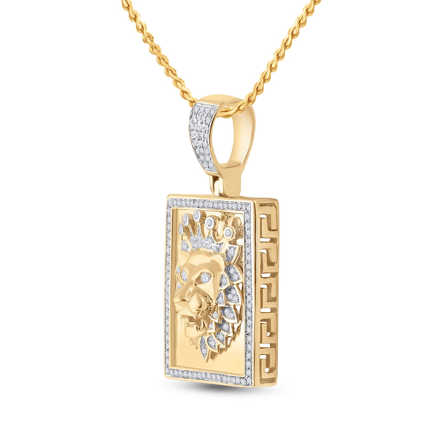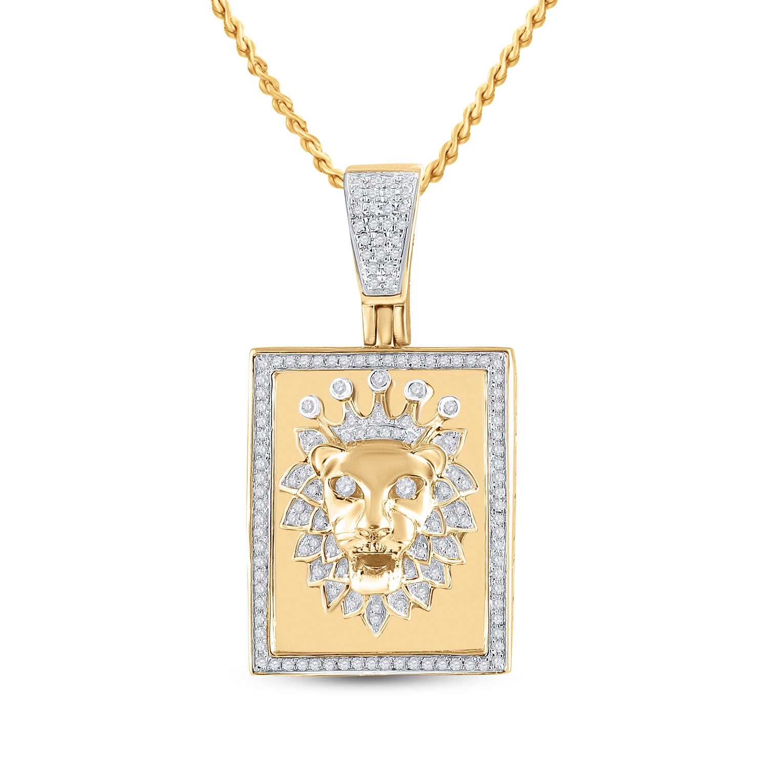 Keene Jewelers 14kt Yellow Gold Mens Round Diamond Lion Crown Rectangle Tag Charm Pendant 1/2 Cttw