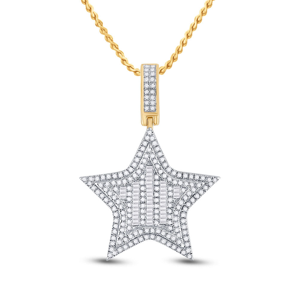 Keene Jewelers 14kt Yellow Gold Mens Round Diamond Star Charm Pendant 3/4 Cttw
