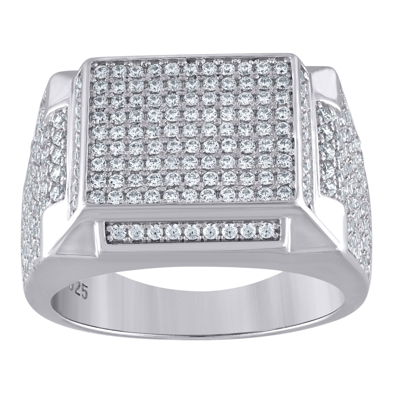 Keene Jewelers 925 Sterling Silver Mens Cubic Zirconia Square Top Cluster Ring