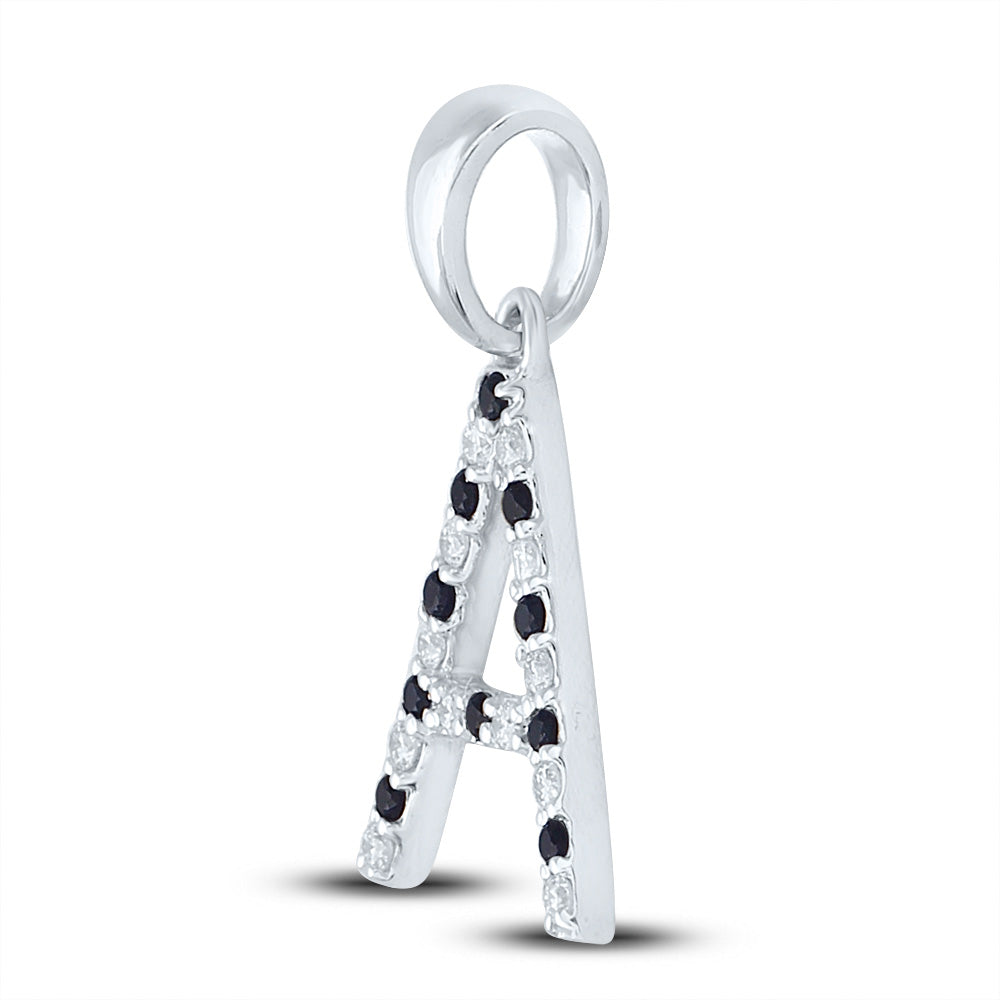 Keene Jewelers 10kt White Gold Womens Round Blue Sapphire Diamond Initial A Letter Pendant 1/5 Cttw