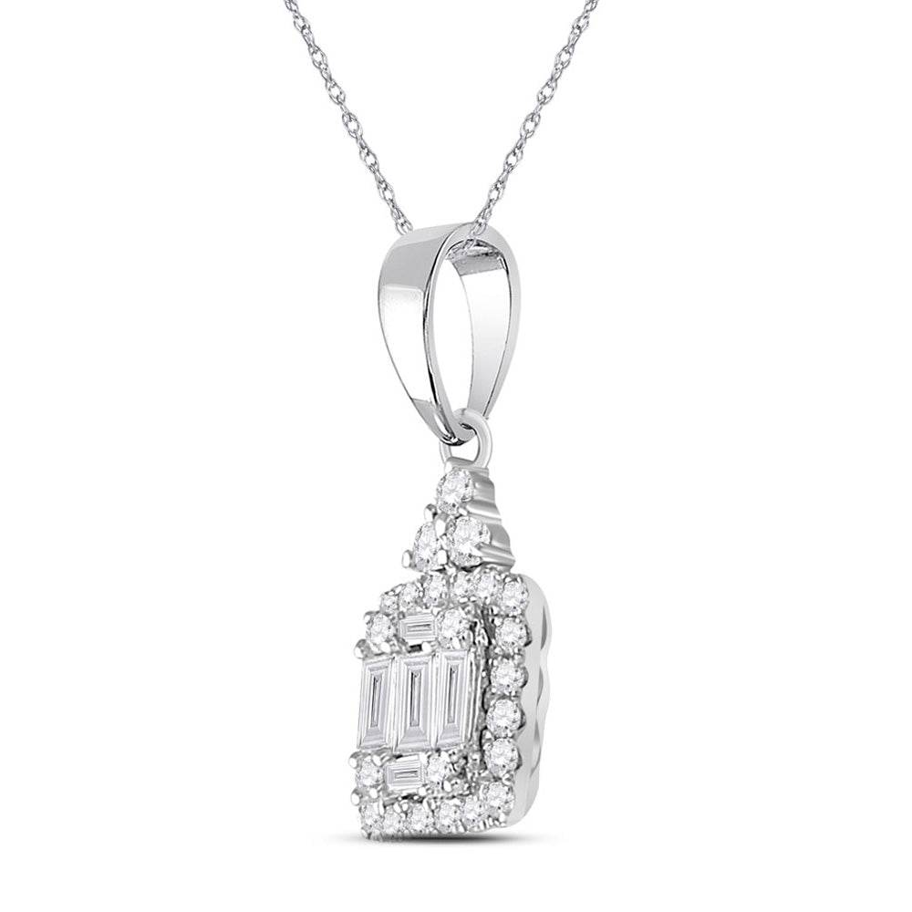 Keene Jewelers 14kt White Gold Womens Baguette Diamond Square Cluster Pendant 1/3 Cttw