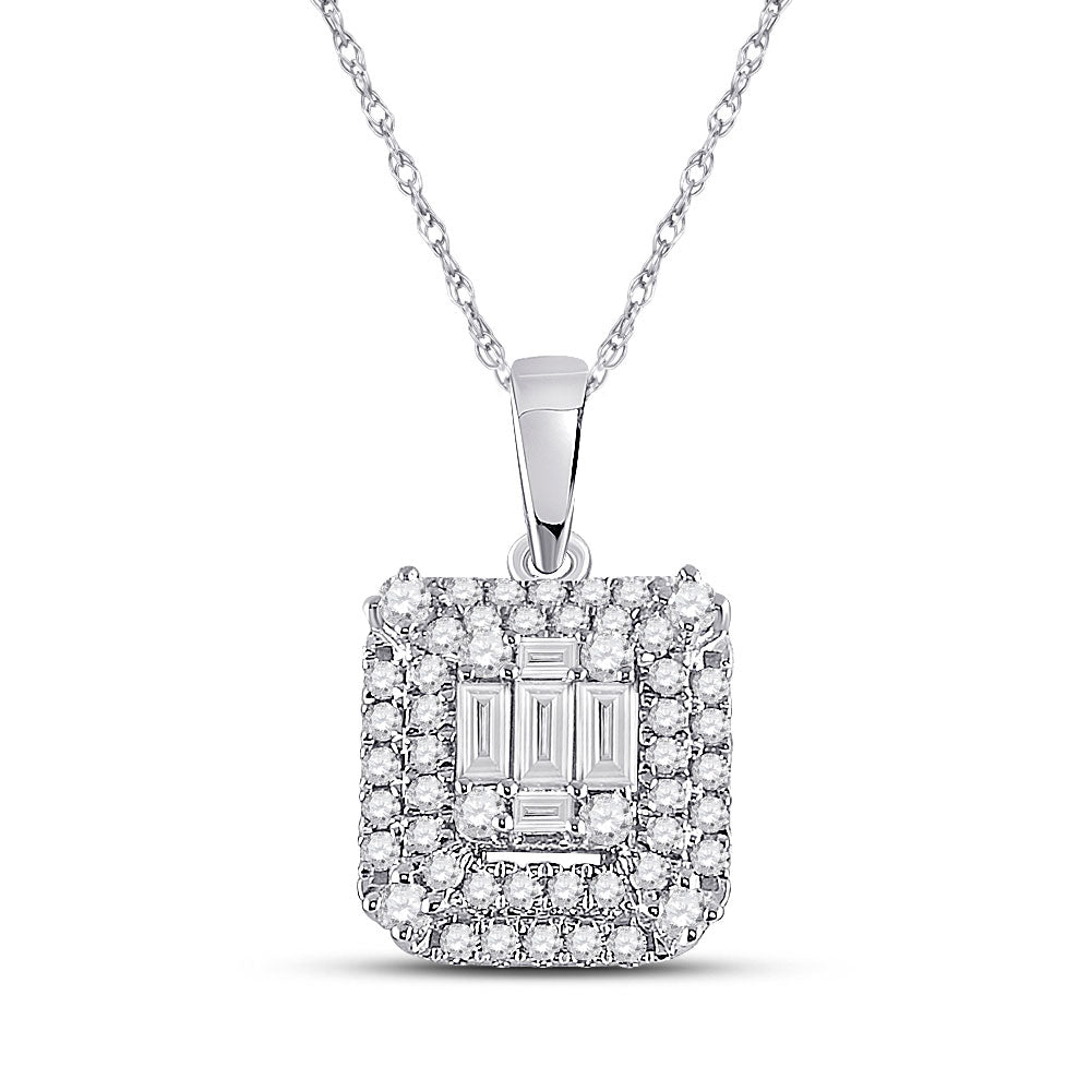 Keene Jewelers 14kt White Gold Womens Baguette Diamond Square Pendant 1/2 Cttw