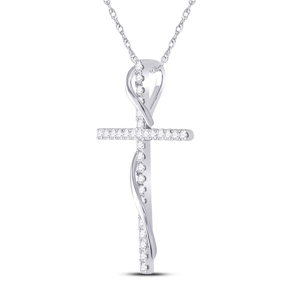 Keene Jewelers 14kt White Gold Womens Round Diamond Cross Pendant 1/2 Cttw