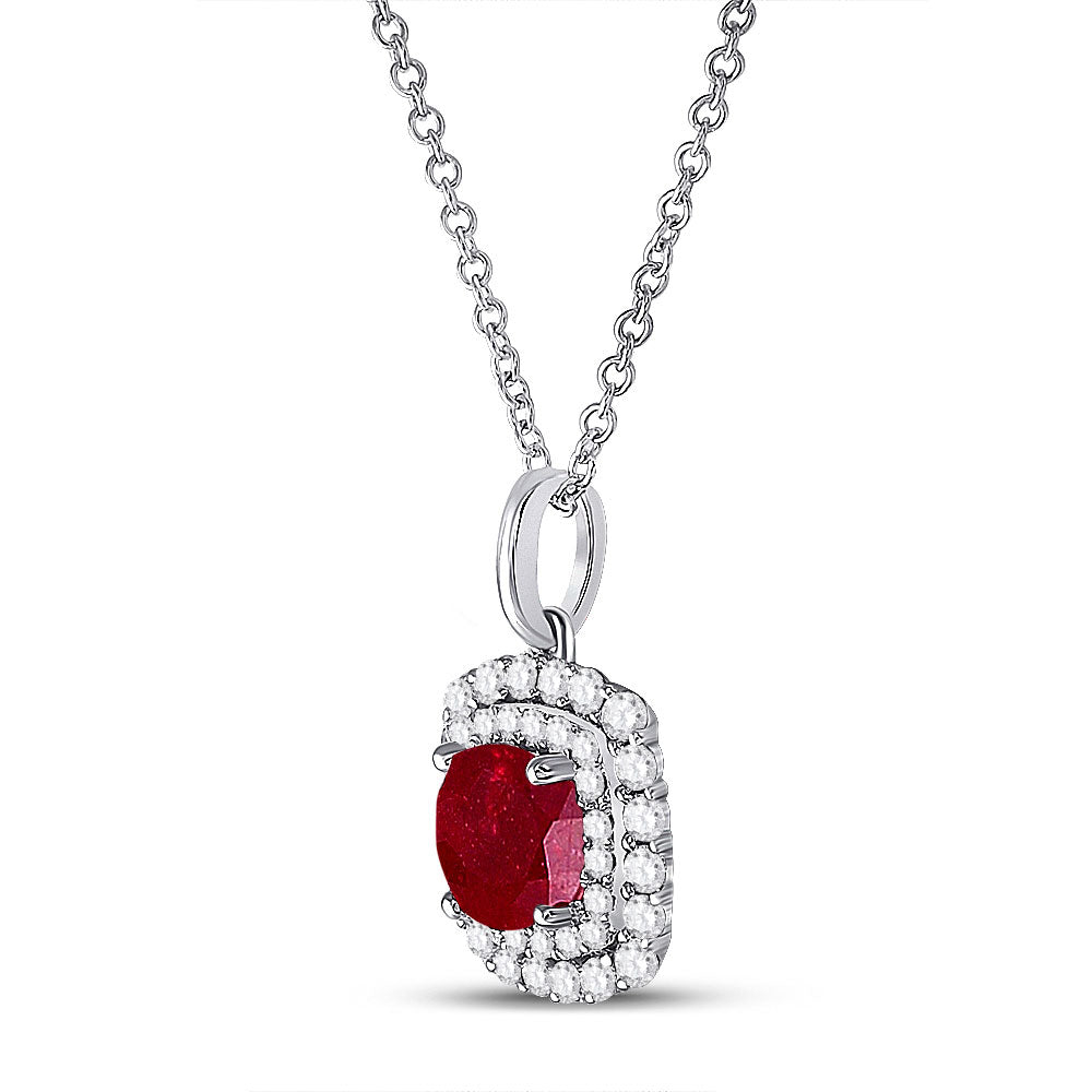 Keene Jewelers 14kt White Gold Womens Round Ruby Diamond Solitaire Pendant 1 Cttw