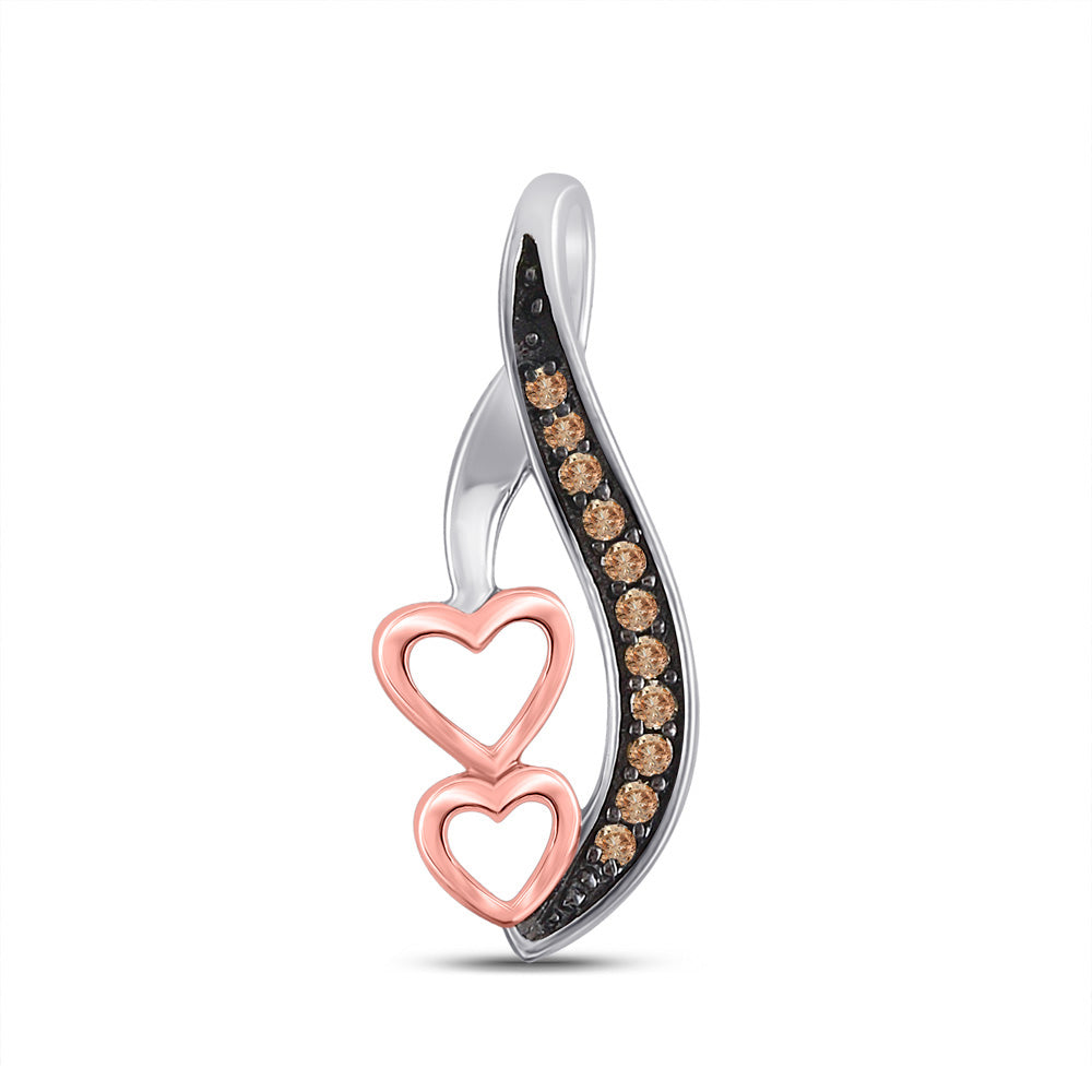 Keene Jewelers Sterling Silver Womens Round Brown Diamond Heart Pendant 1/10 Cttw