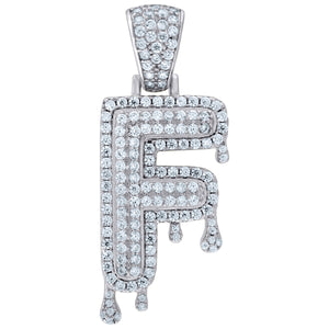 Keene Jewelers 925 Sterling Silver Unisex CZ Initial Letter F Dripping Charm Pendant
